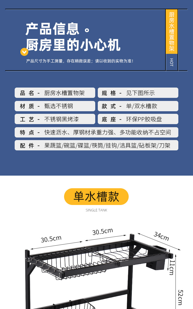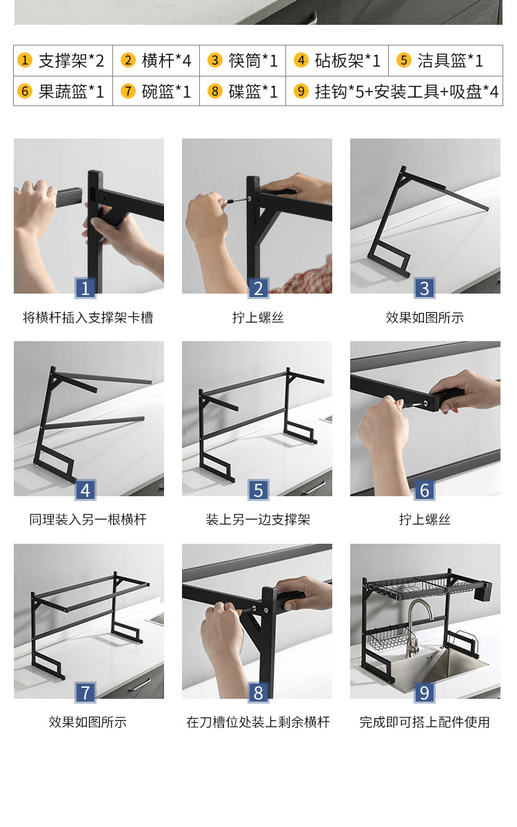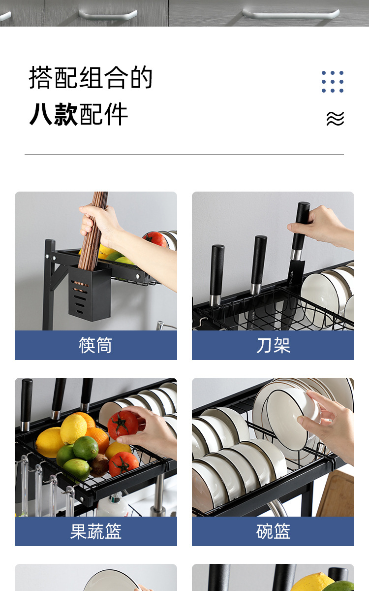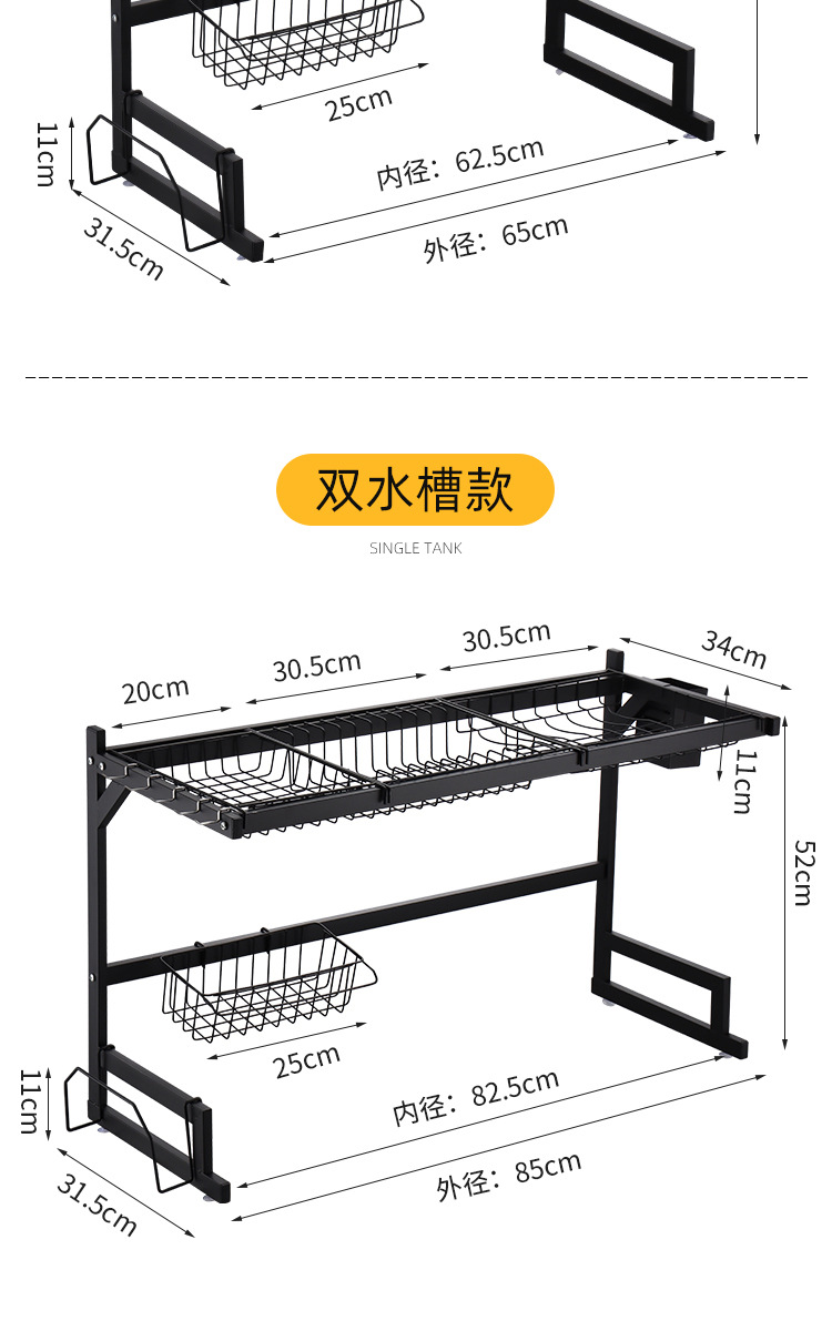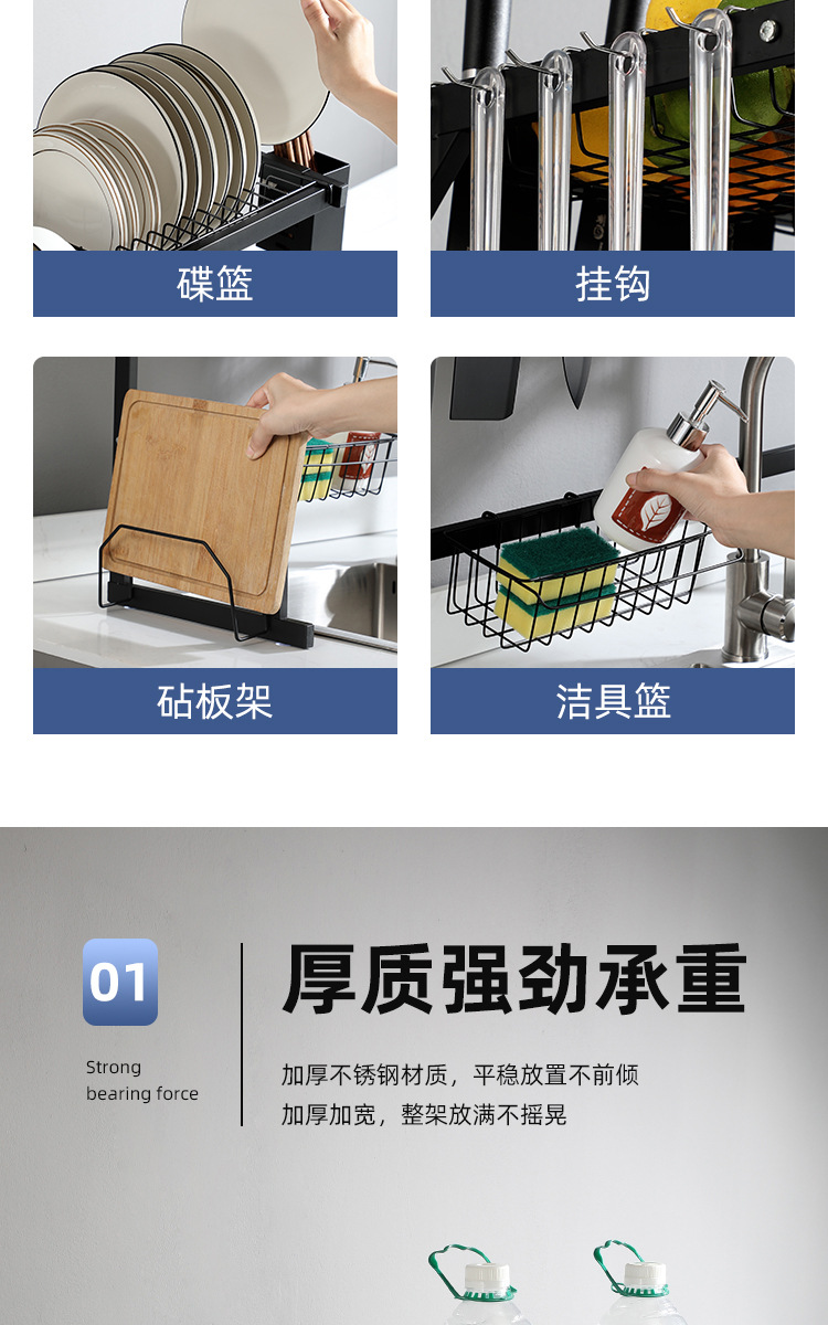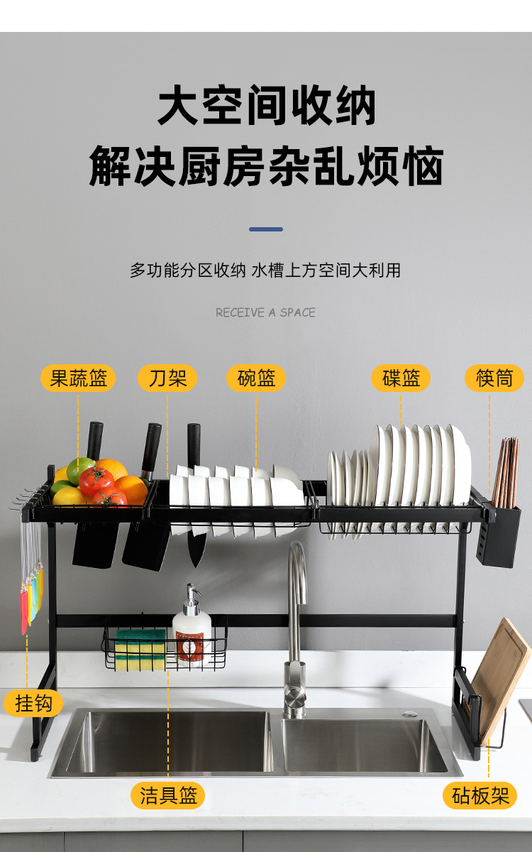 kitchen black carbon steel single double-layer sink table drain rack storage rack bowl rack bowl dish storage rack southeast asia