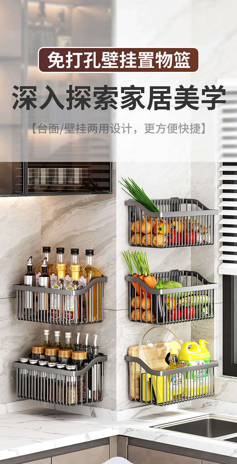 kitchen seasoning utensils storage rack punch-free multi-layer seasoning jar storage rack wall hanging vegetable storage basket