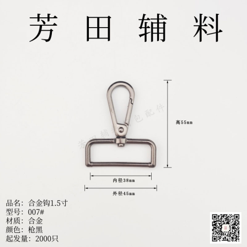 Internal diameter 38mm alloy keychain pet hook dog hook luggage hook, main colors include white, light gold, gun black, and blue-green, other colors can be custom-made, and we offer preferential prices for large quantities.