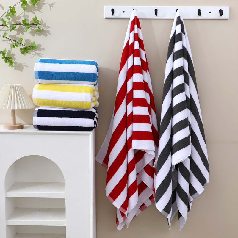cross-border all-cotton beach towel customized 75*152 striped bath towel beach swimming foreign trade gift amazon large bath towel