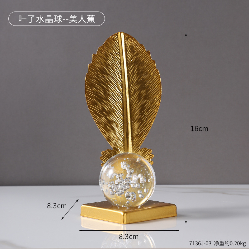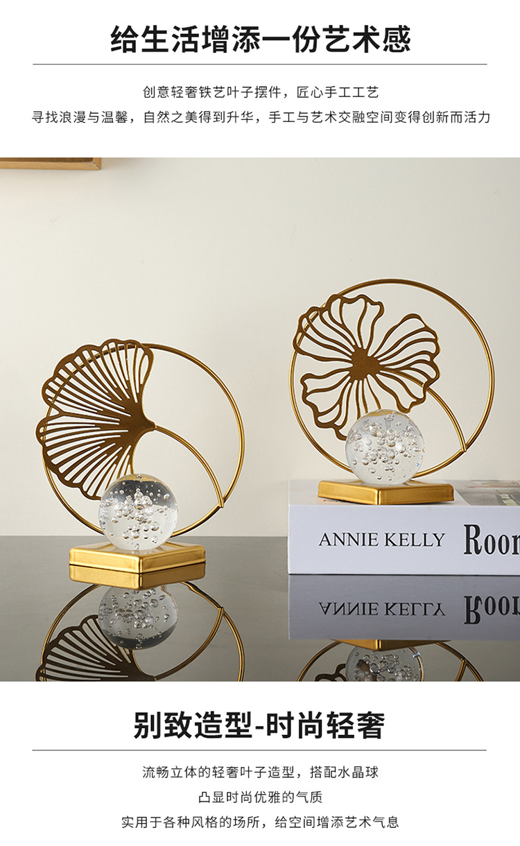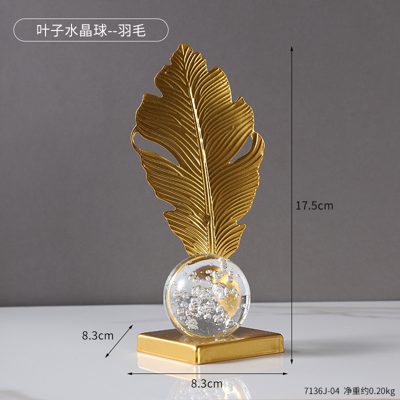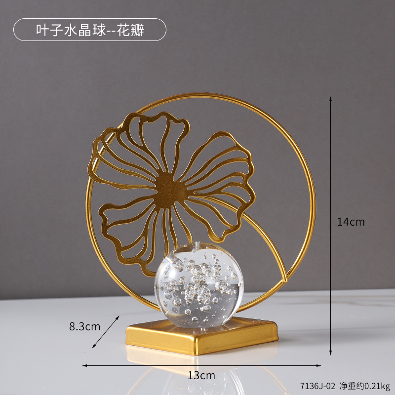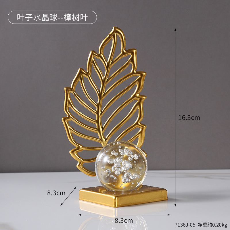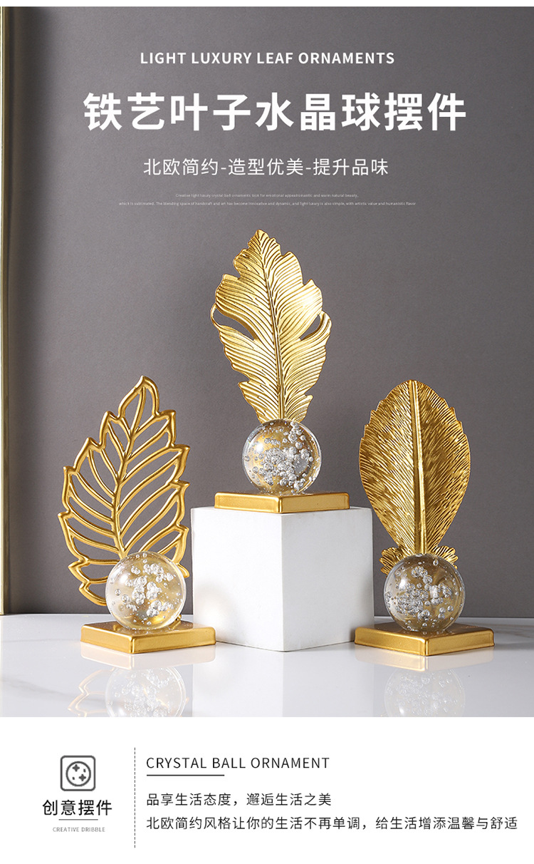 wrought iron golden leaves crystal ball decoration metal crafts home soft decoration living room entrance tv cabinet decorations 中文版