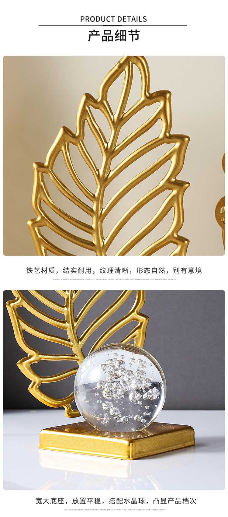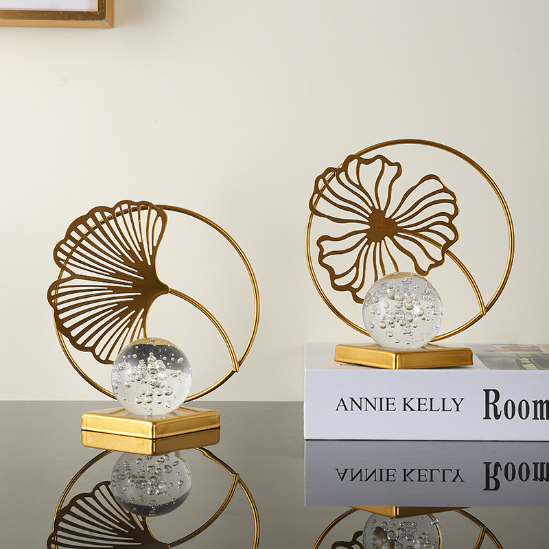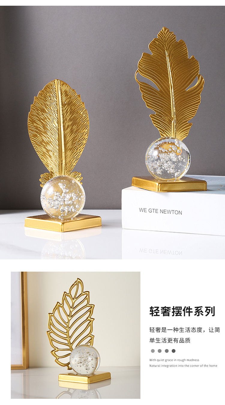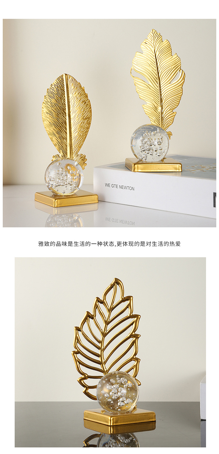 wrought iron golden leaves crystal ball decoration metal crafts home soft decoration living room entrance tv cabinet decorations 中文版