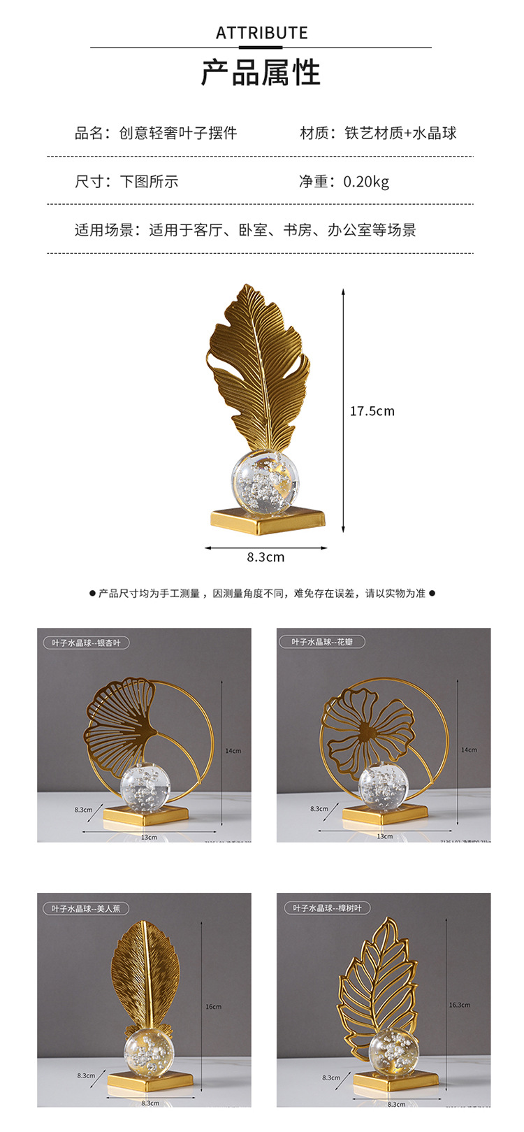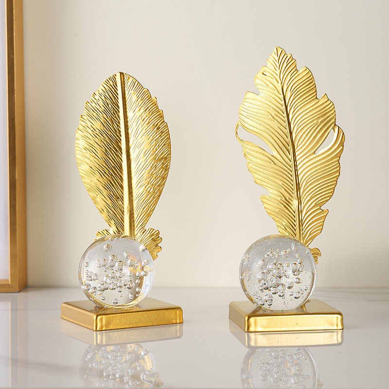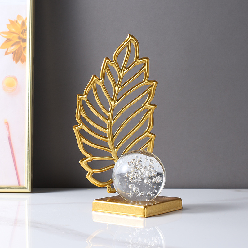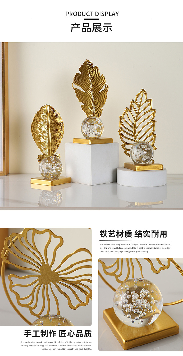 wrought iron golden leaves crystal ball decoration metal crafts home soft decoration living room entrance tv cabinet decorations