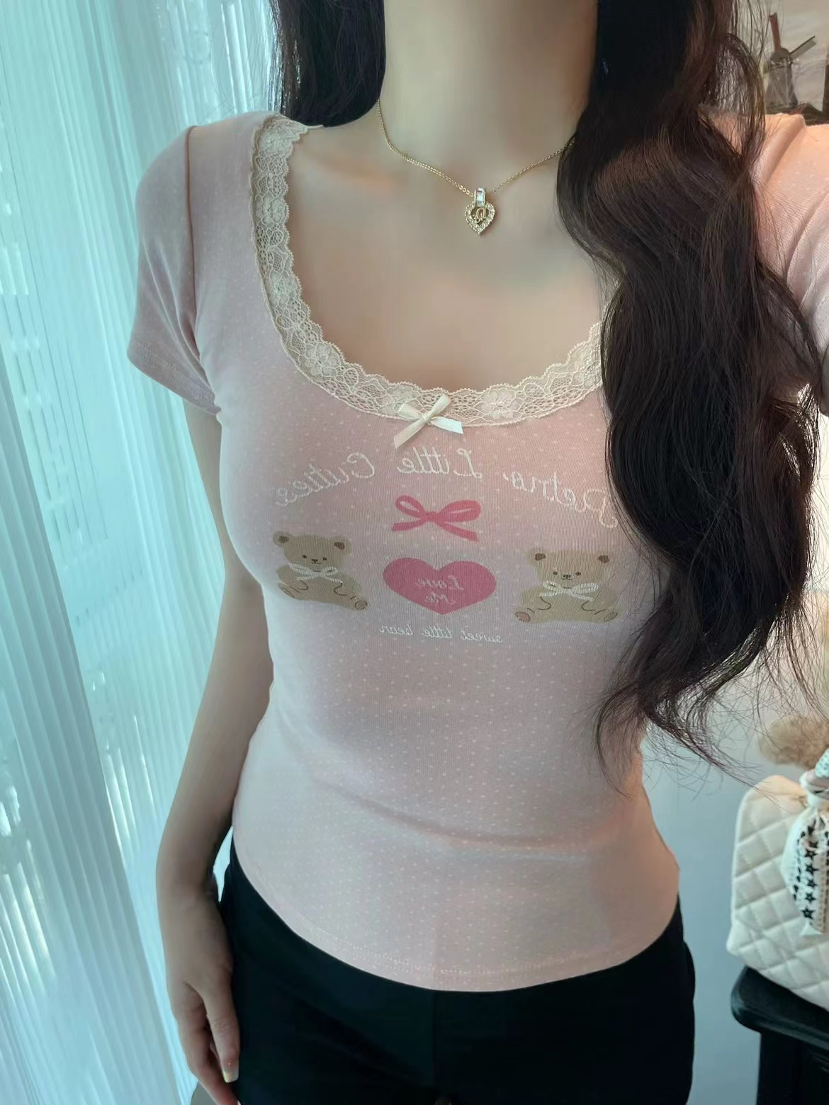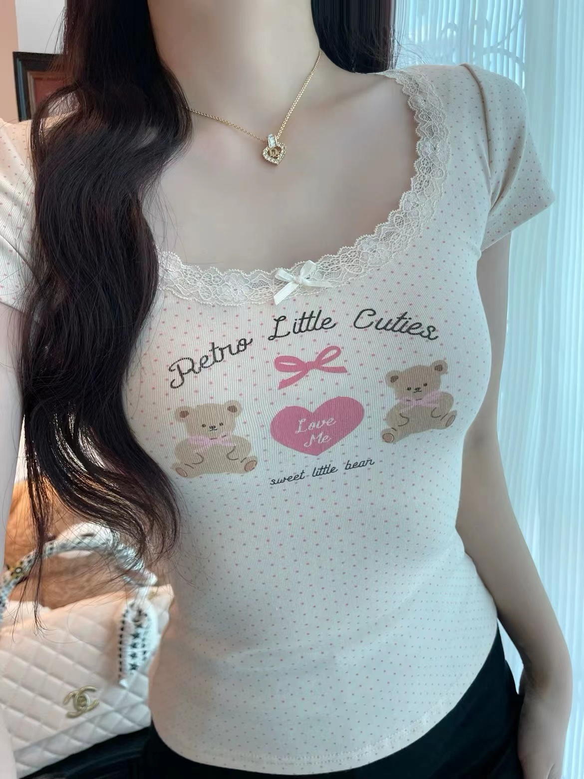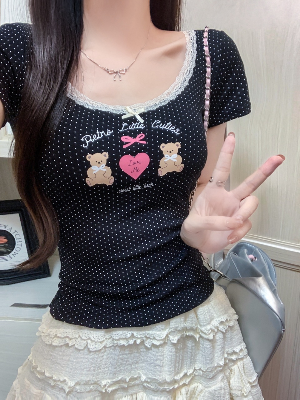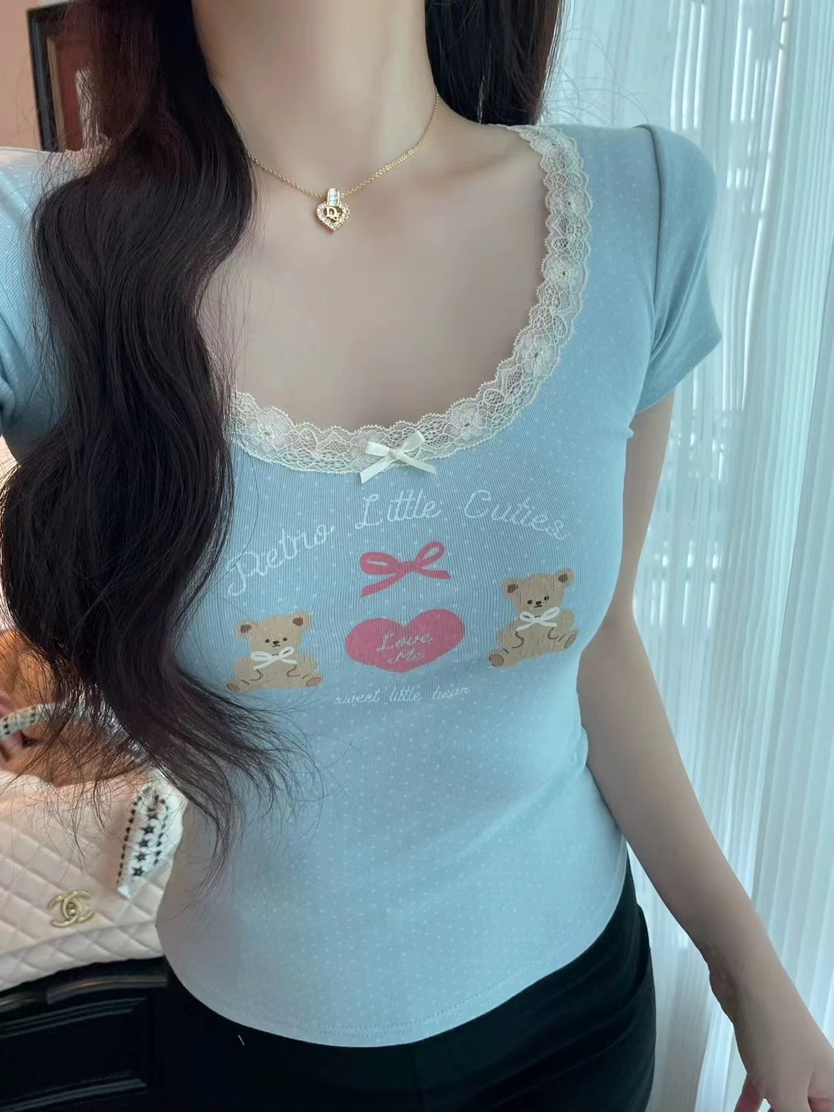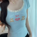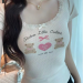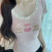 fashionable printed short-sleeved t-shirt for women summer niche beautiful small slim fit slimming short top lace