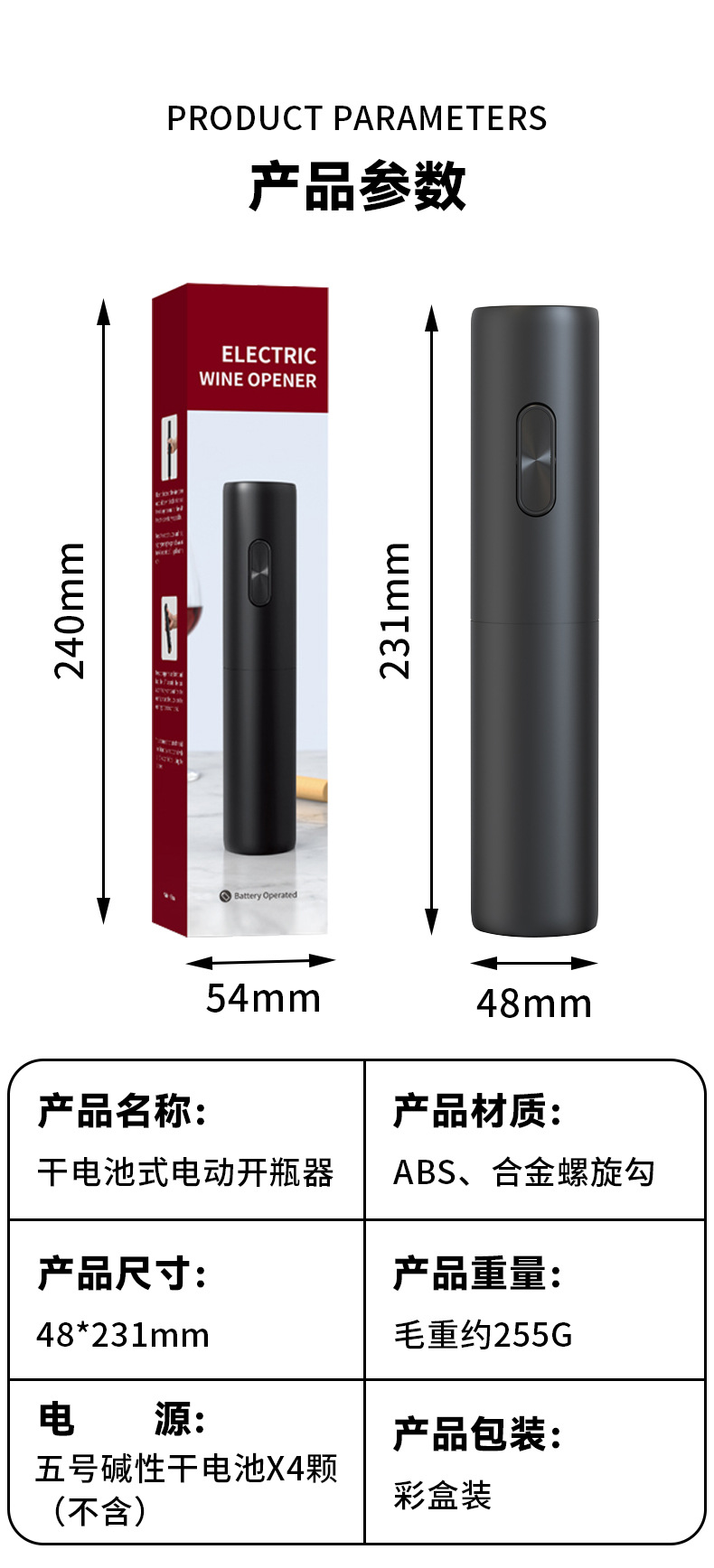 dry battery electric wine bottle opener color box package