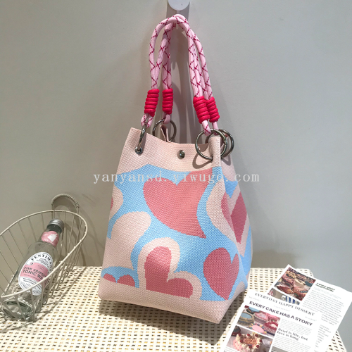 korean niche design knitted bucket bag women's fashion all-match traveling and shopping hand bag 中文版