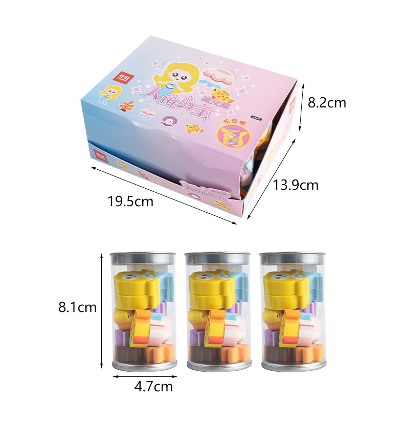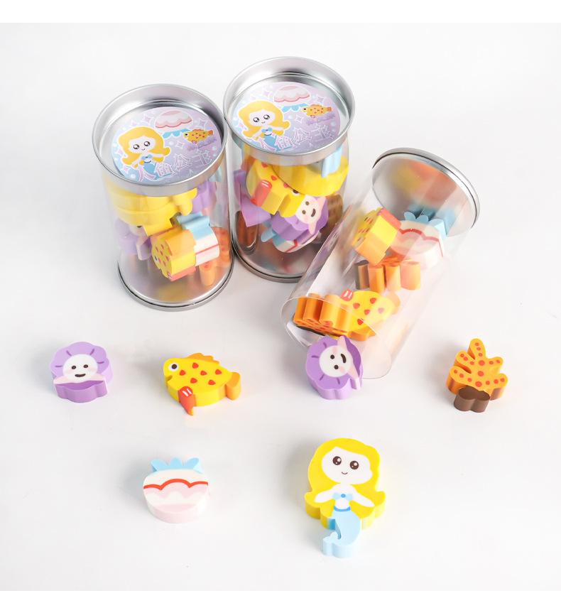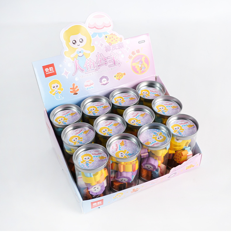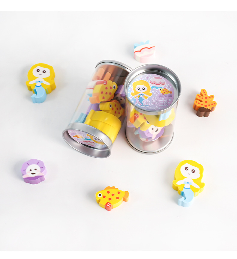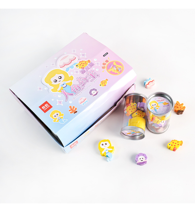 E-mail:Name: Mermaid Princess eraser 12/barrel 24/medium box Gross weight: 27.6kg box gauge: 45*40 * 35.5cm
