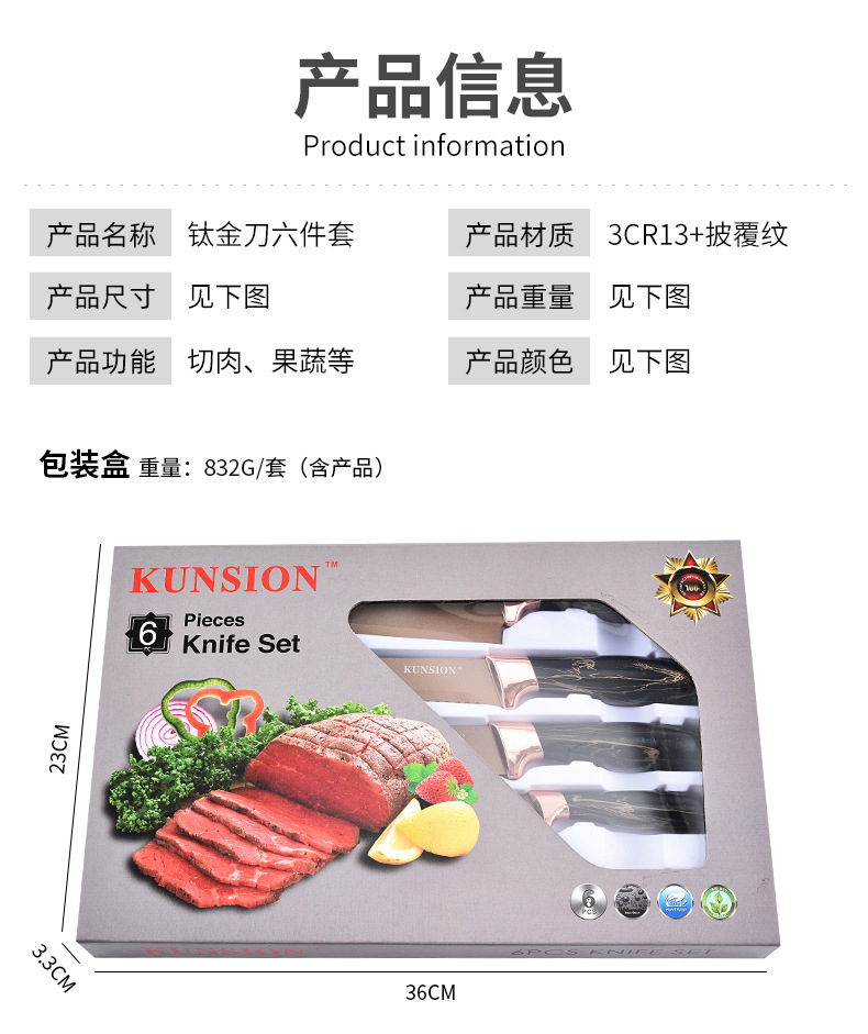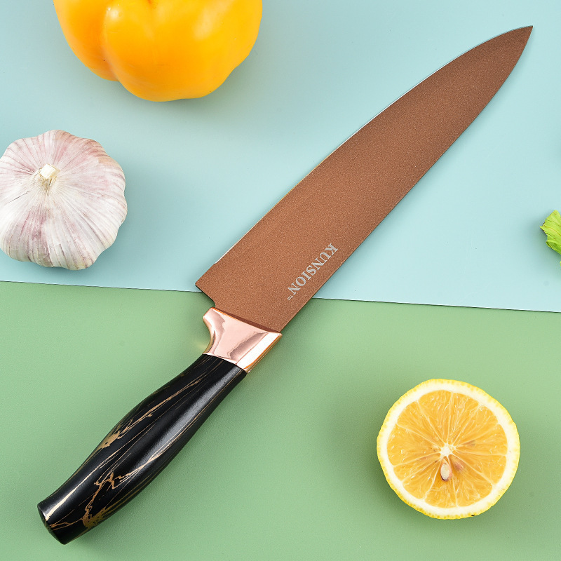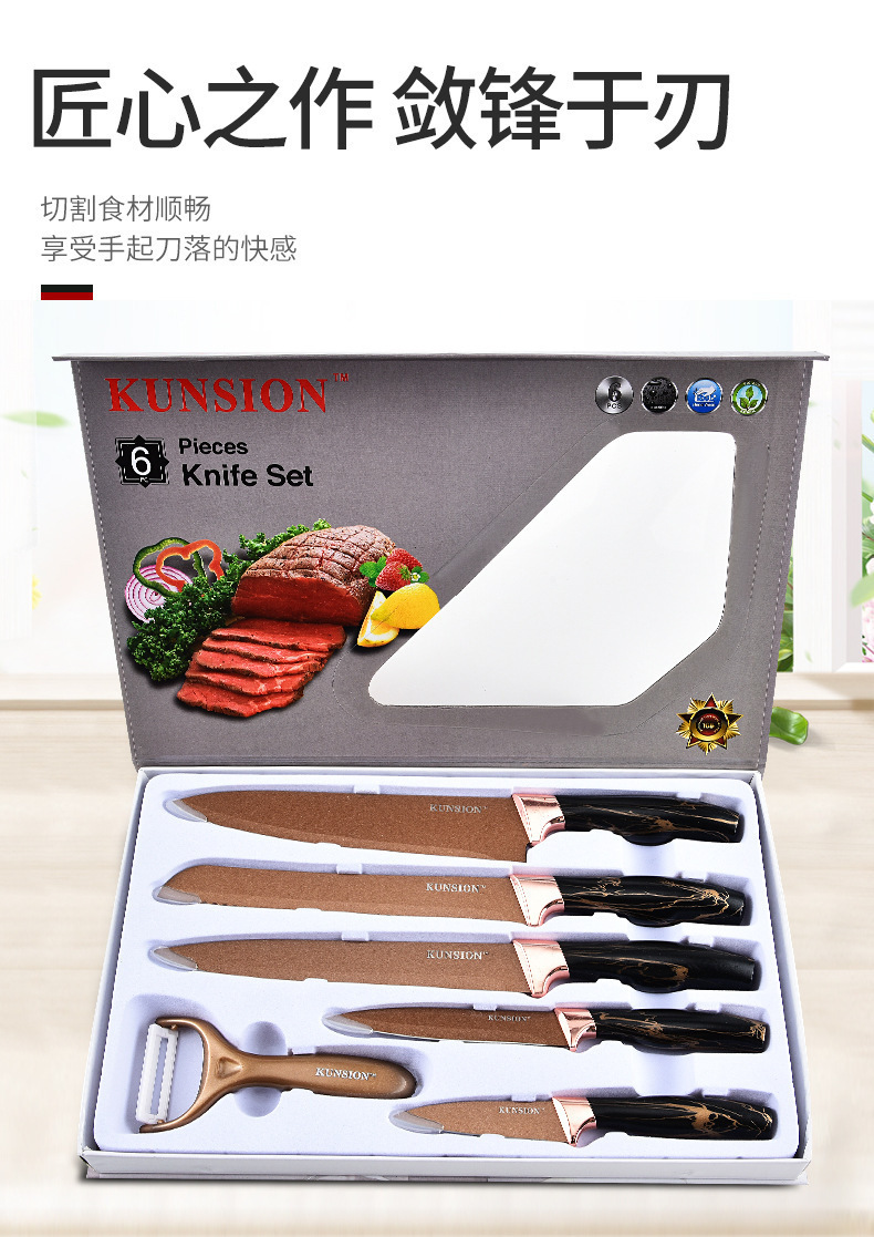 cross-border kitchen knife kit 6-piece set electroplating head batch handle chef knife fruit knife set knife gift box