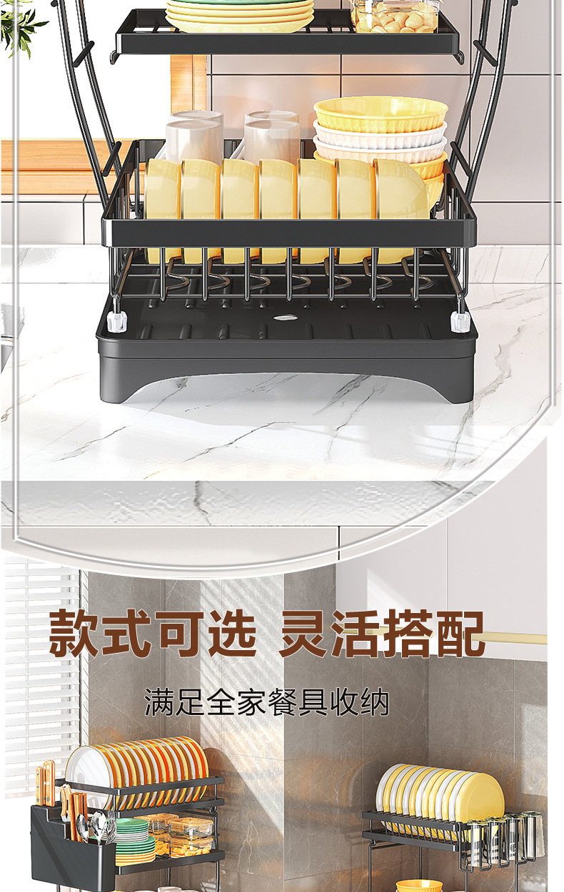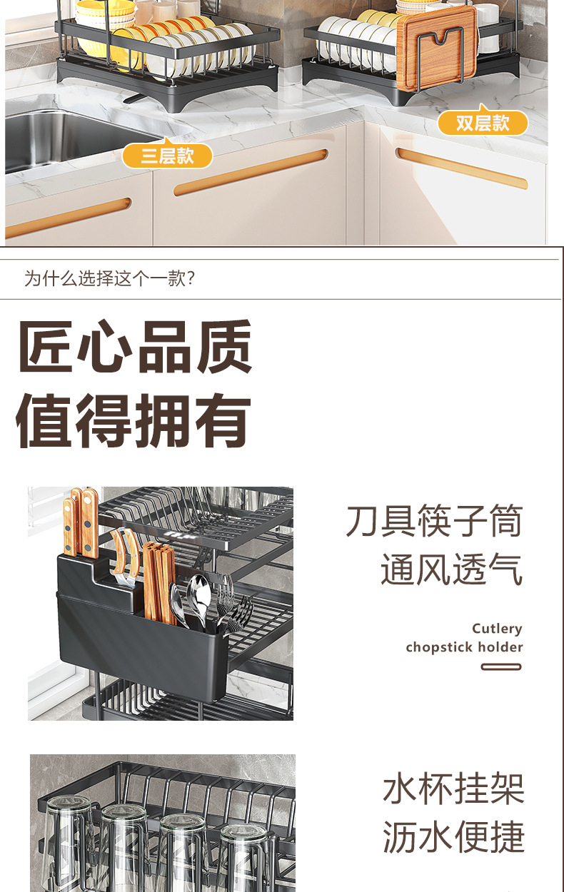 black * three layers * knife chopstick canister + cup holder + chopping board rack