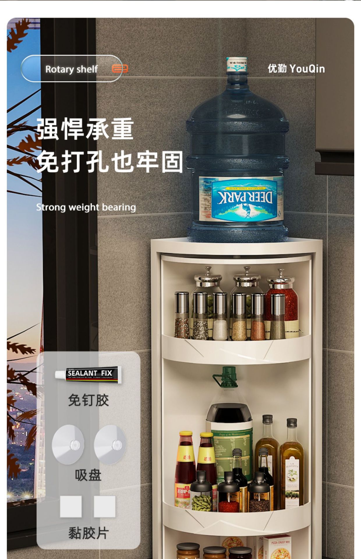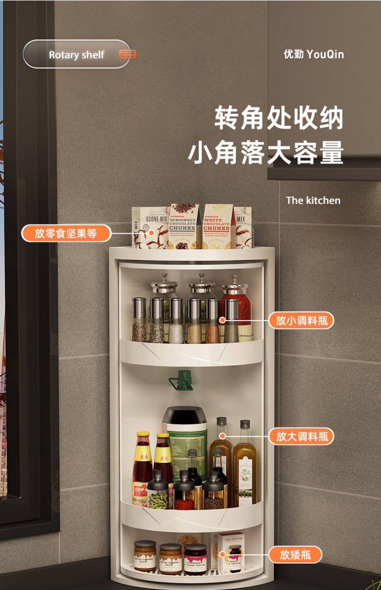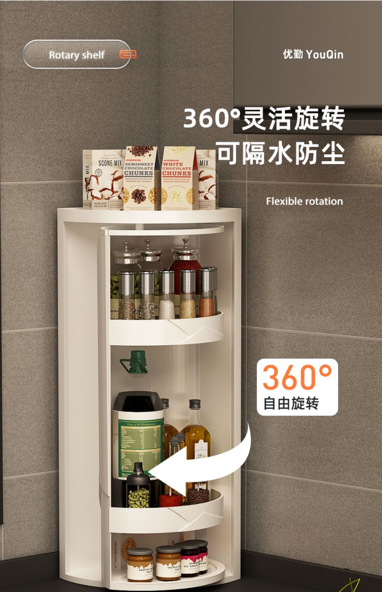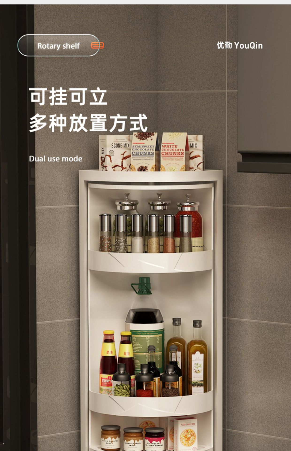small size rotary storage rack-single layer and white