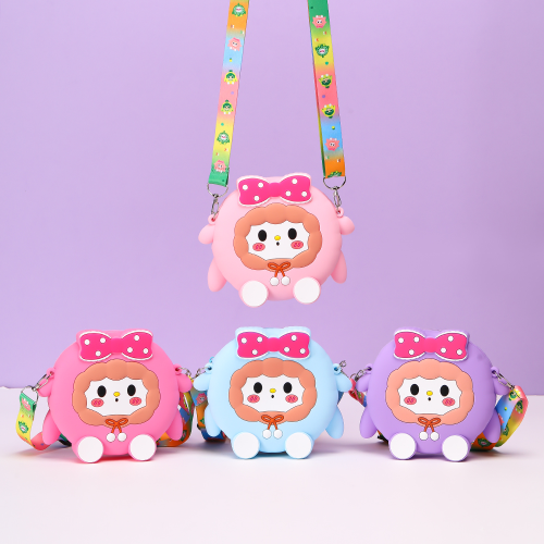 cartoon children's silicone shoulder messenger bag cute little girl coin purse fashion girls baby ins small bag 中文版