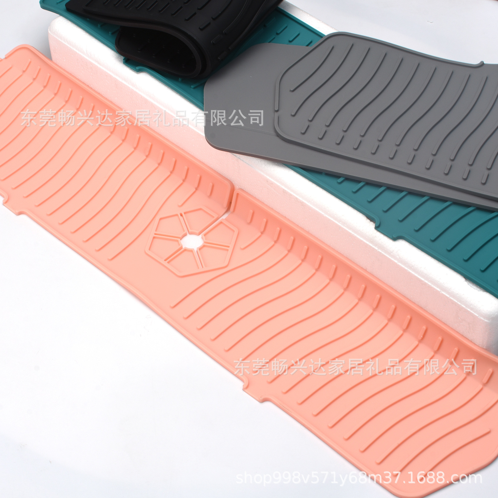 Kitchen and bathroom silicone faucet spatter-proof pads with large, medium, and small sizes. These multi-functional, foldable faucet spatter-proof pads are convenient for preventing water from leaking down and making the vanity dirty. They are made of eco-friendly silicone material, which has no odor and will not grow mold. The faucet mouth is fixed and can be stretched, with lines on the back to fit wide and narrow countertops. The wavy pattern on the pad is designed for easy draining, and it can be used to place soap, soap, and other items. It can be folded and stored, making it convenient to carry and store. It can be used for personal items when traveling, keeping everything clean and tidy.