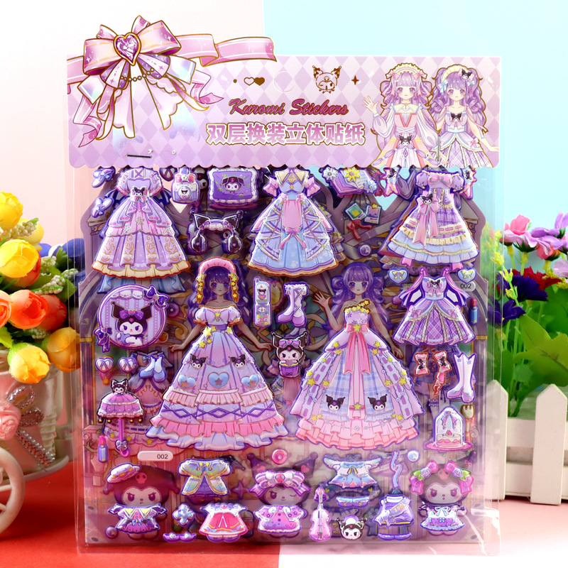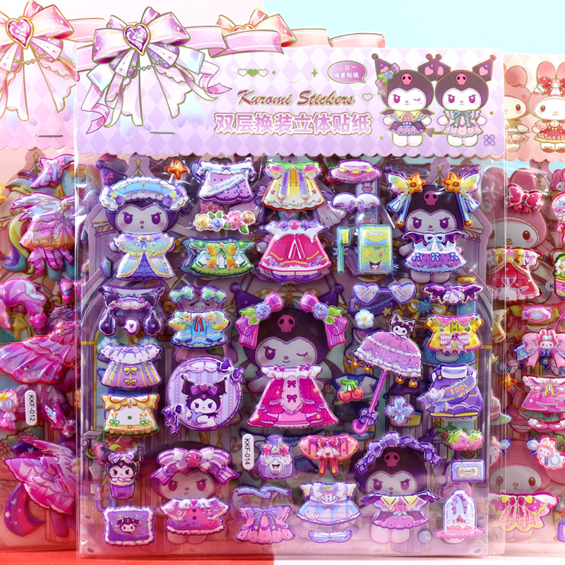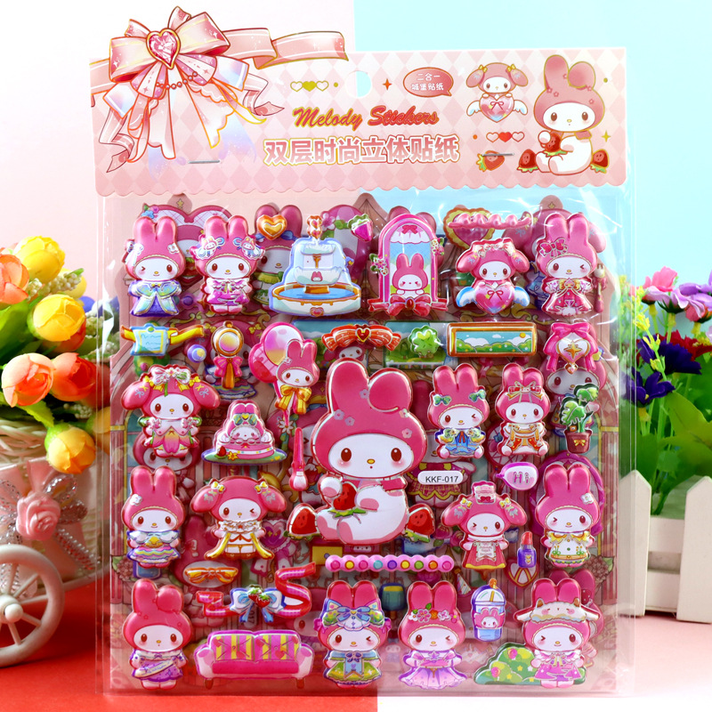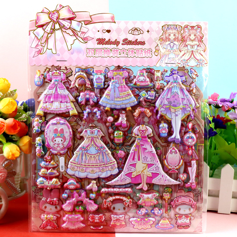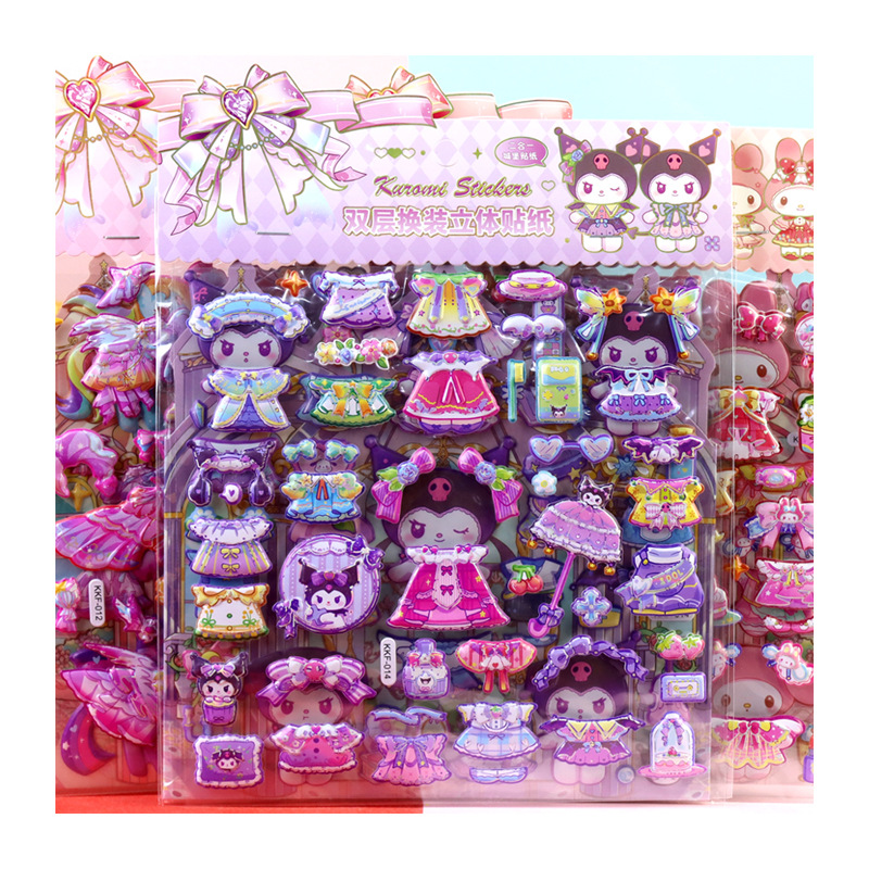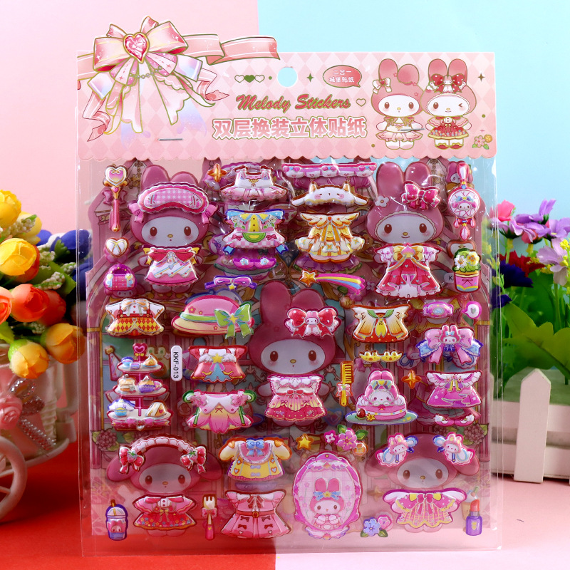 children's cartoon double-layer three-dimensional kolomi melody stickers stereo plus size bubble stickers sanrio dressing stickers