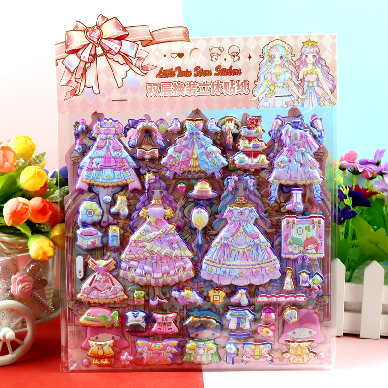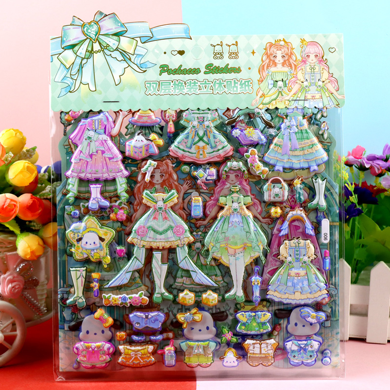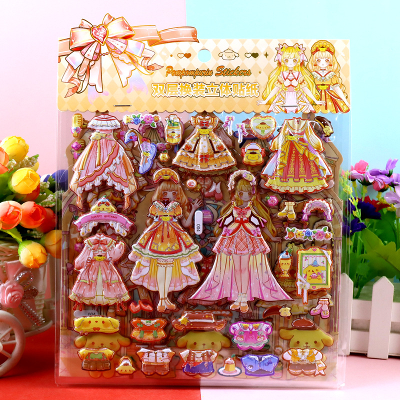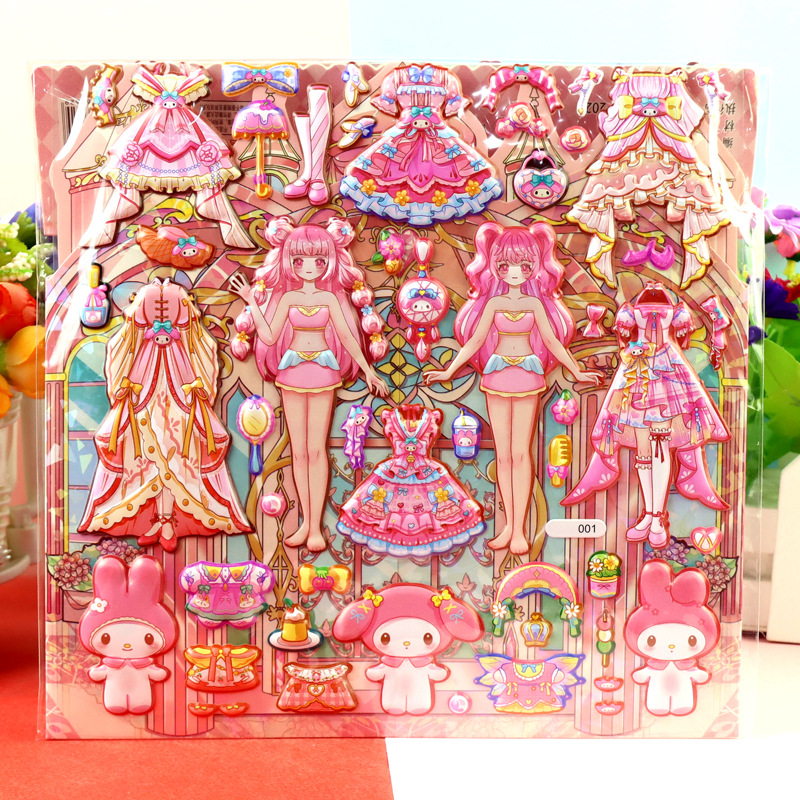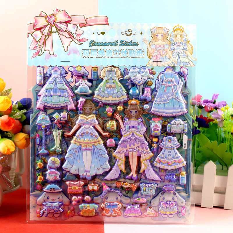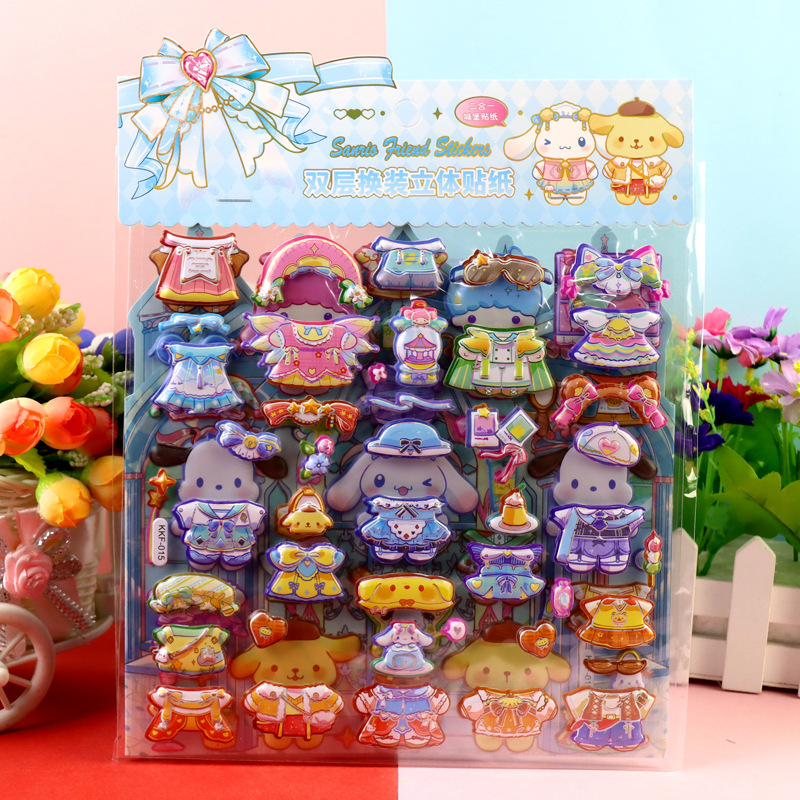 children's cartoon double-layer three-dimensional kolomi melody stickers stereo plus size bubble stickers sanrio dressing stickers