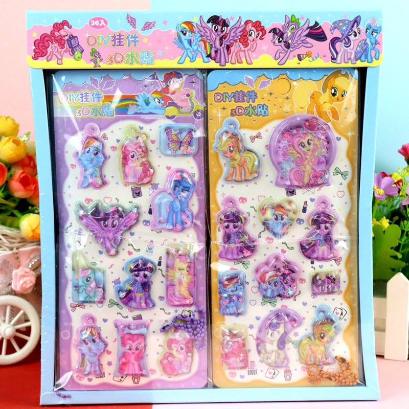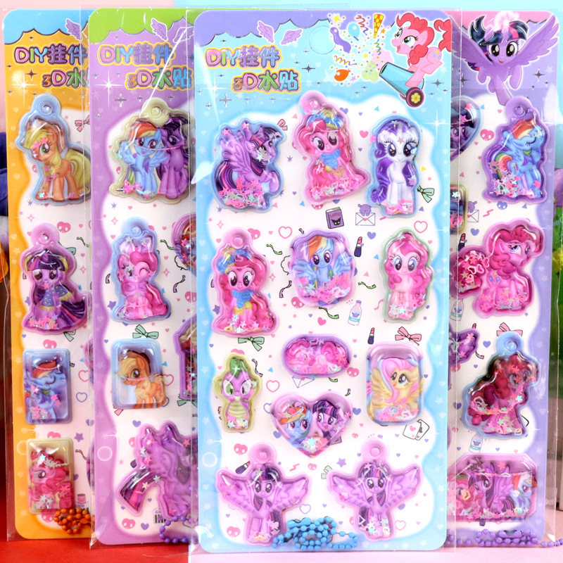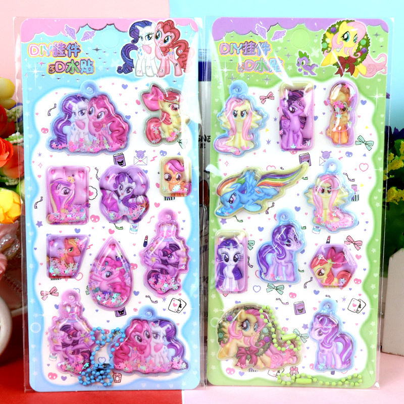 my little pony boxed 3d three-dimensional shake water stickers ziyue biqi zhenqi apple jia er with pendant water sticker