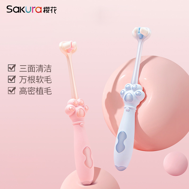 three-sided ten thousand soft fur children's toothbrush 3-12 years old u-shaped student toothbrush single independent cherry sakura