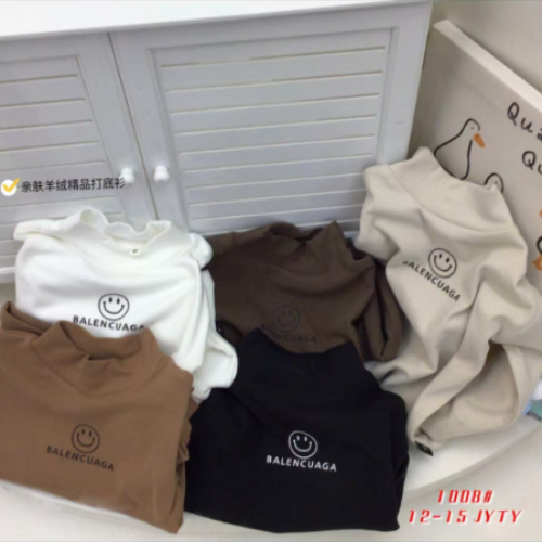 2024 New Men's and Women's Children's Semi-High Neck Long Sleeve T-Shirt Autumn and Winter Cashmere Premium Turtleneck Thermal T-Shirt Children's Top