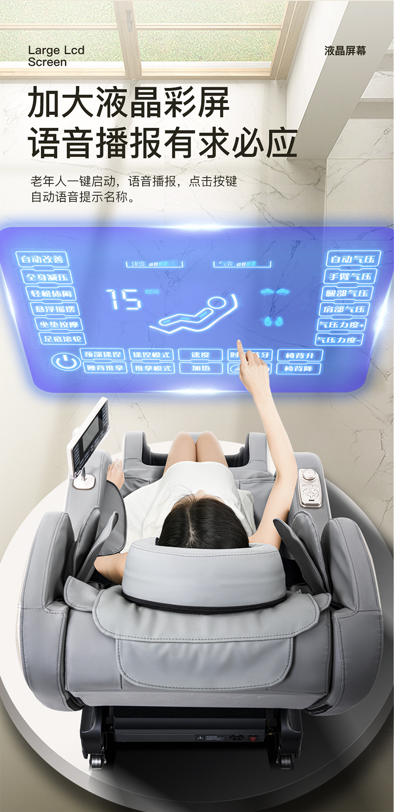 r555 gray and white exclusive flagship (large screen + voice control + hip cushion roller massage + foot roller)