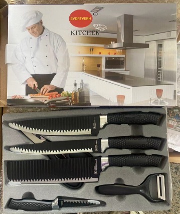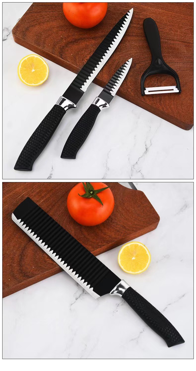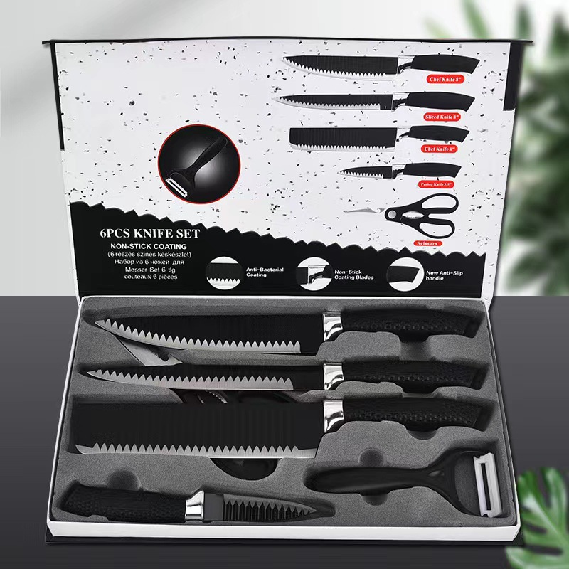 factory direct sales mesh handle six-piece knife set stainless steel embossing knife chef knife kitchen knife fruit knife paring knife scissors 中文版