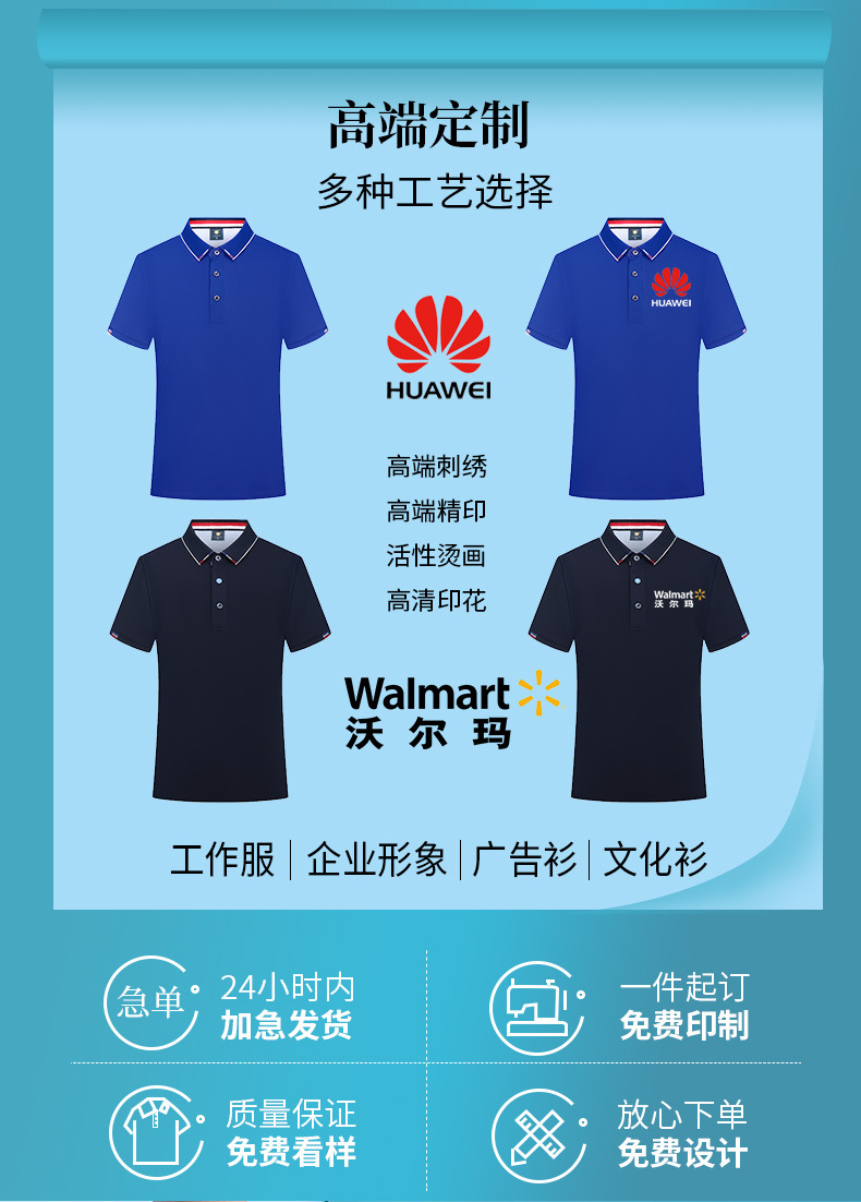shirt custom lapel t-shirt workwear men's and women's same style short sleeve work clothes cultural shirt printing embroidery wholesale 中文版