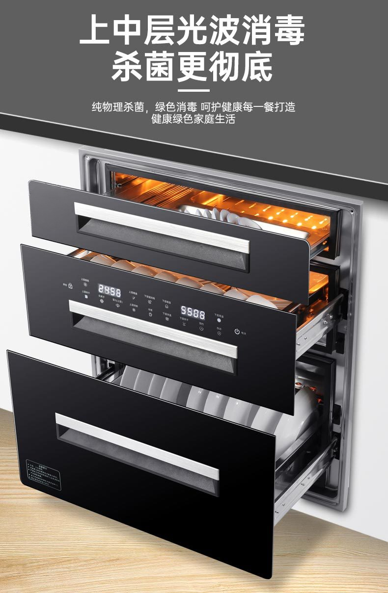 120 liters black high-end smart 16-key three-drawer disinfection cabinet with installation