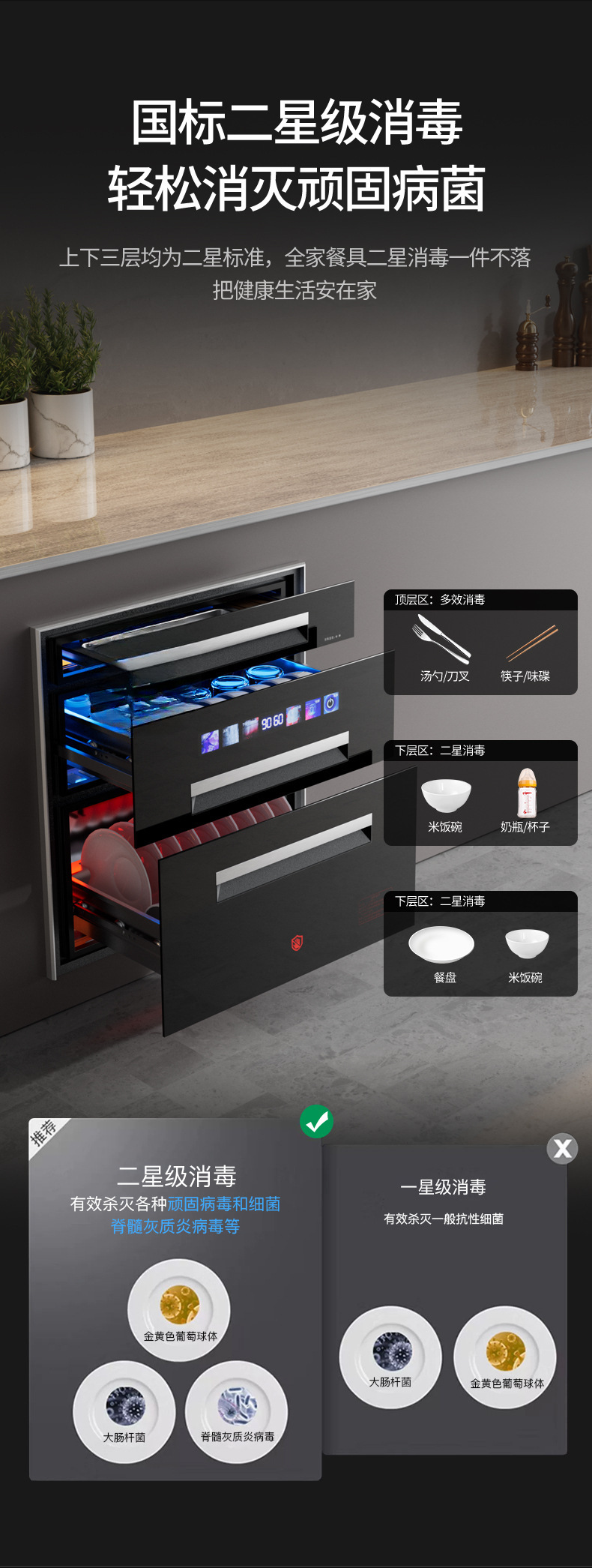 120 l gray high-end smart 12-key three-drawer disinfection cabinet with installation