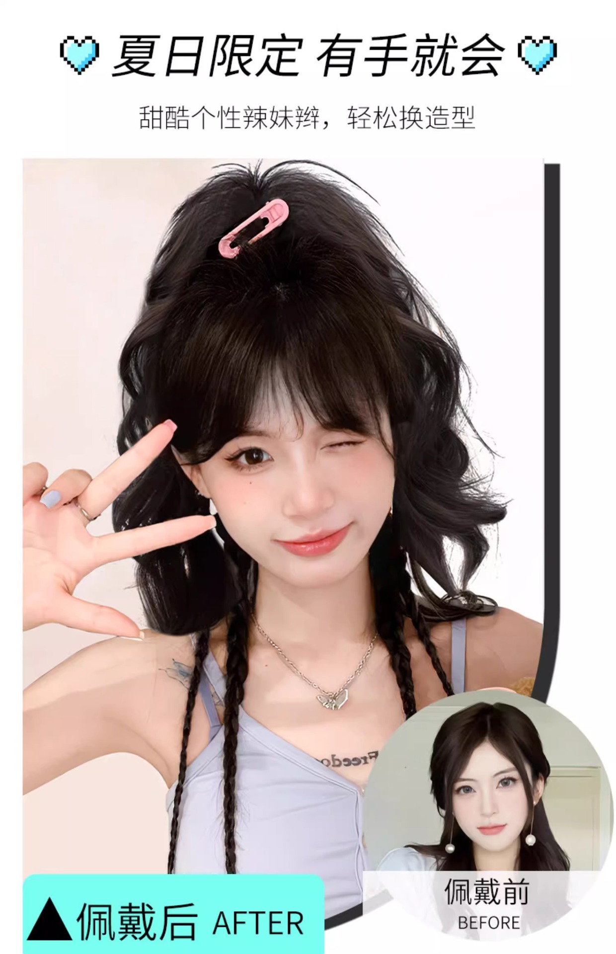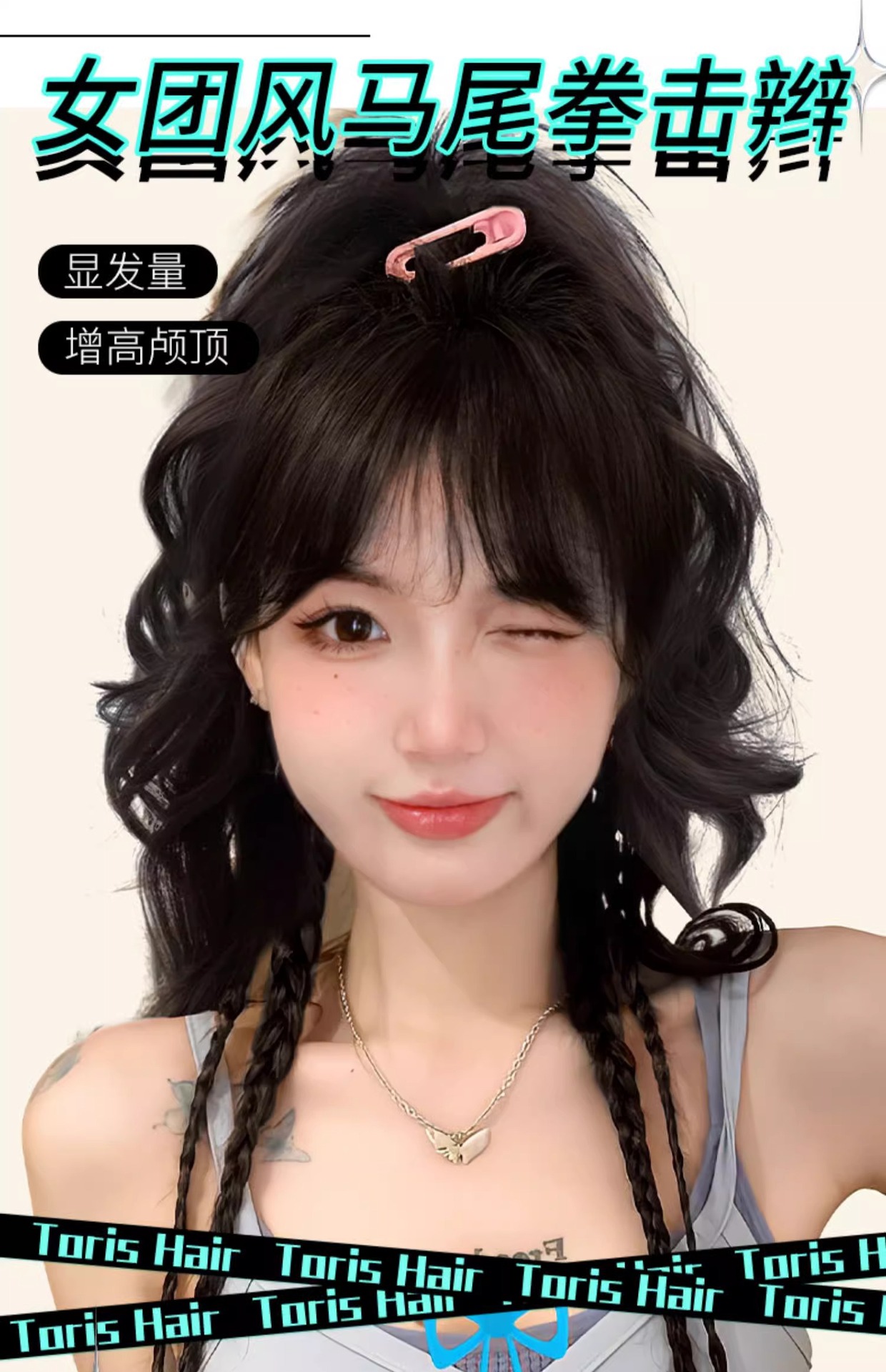 wig female high ponytail grip simulation sweet cool boxing braid waterfall half tie ponytail color vitality wig braid