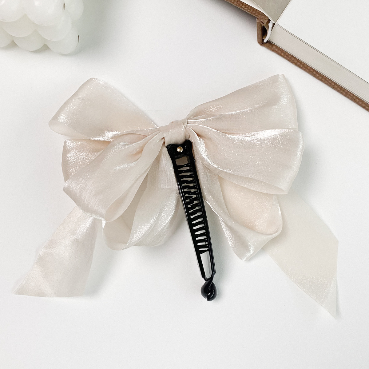 2022156 creamy-white chiffon ribbon banana clip