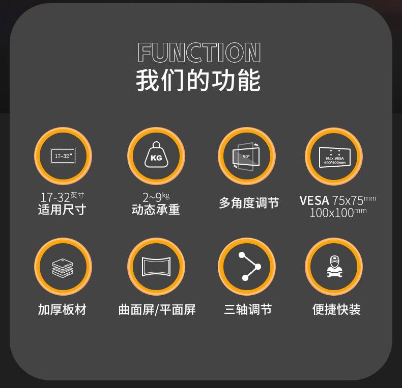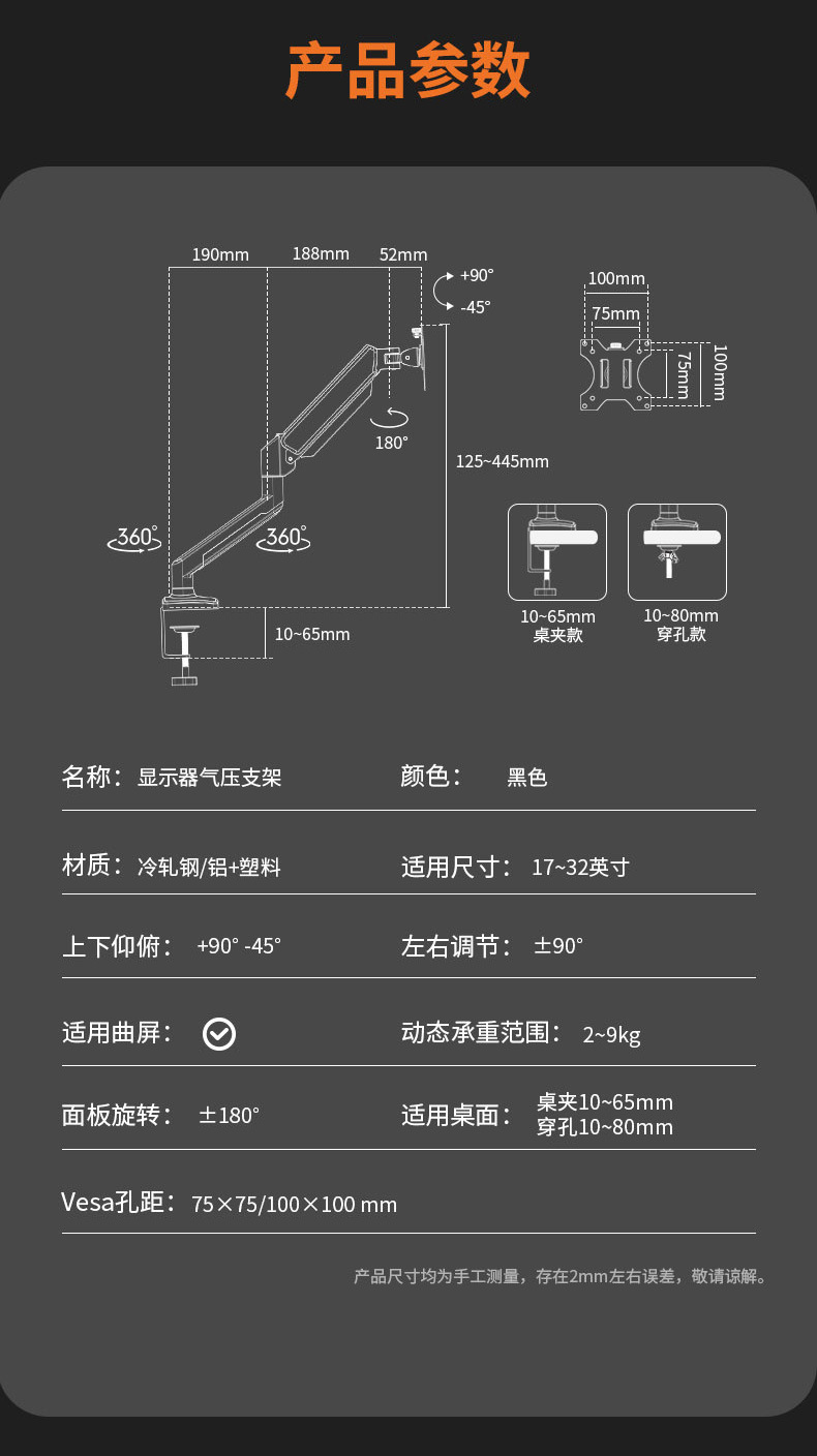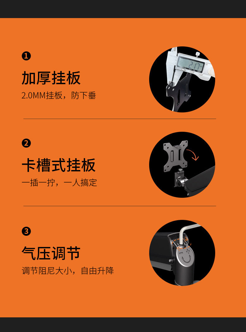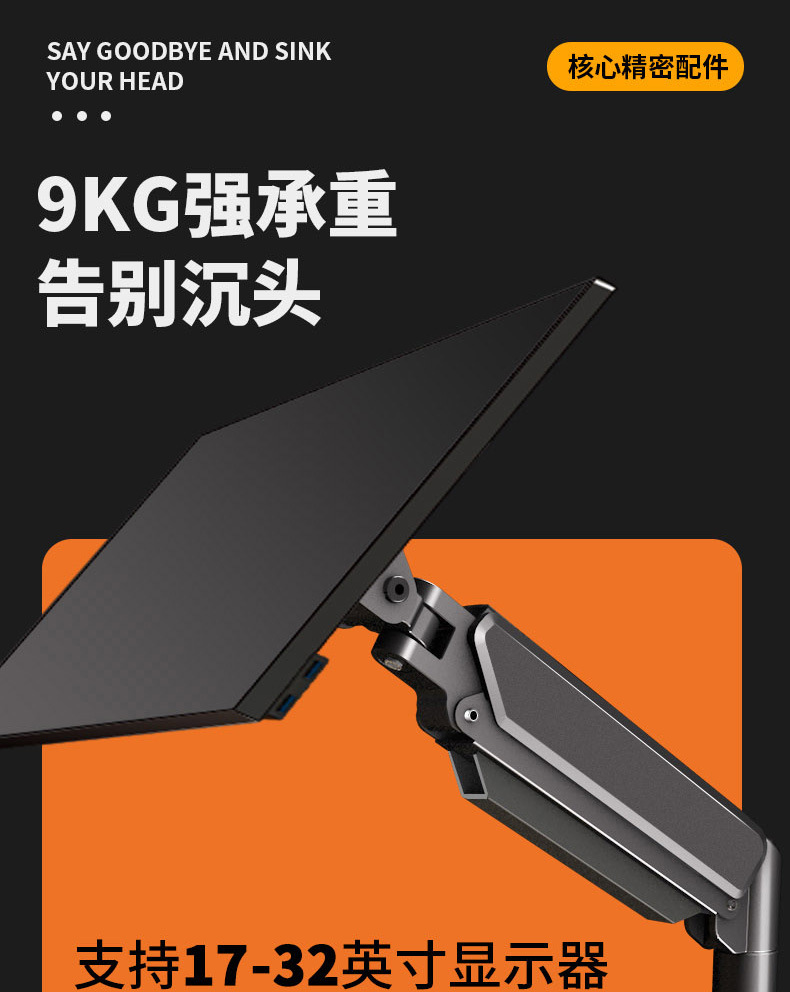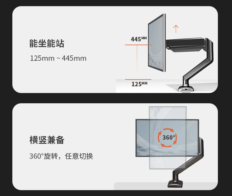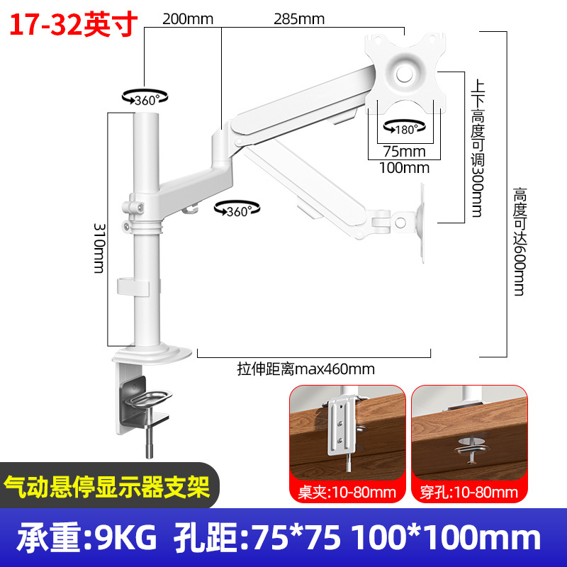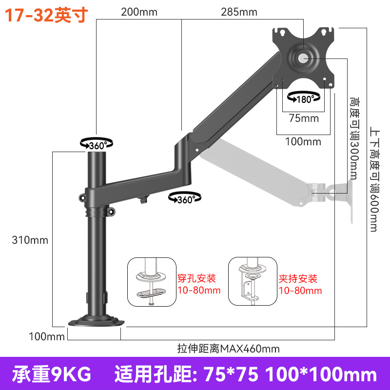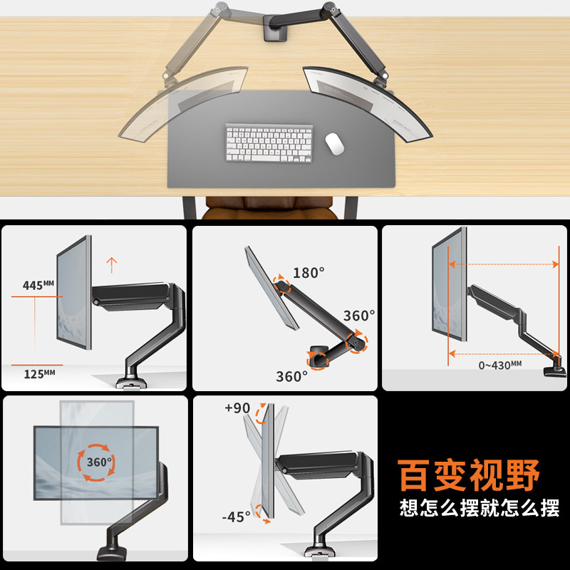 jianleji straight hair 17-32 inch computer mechanical arm bracket punch-free adjustable display vertical screen rotation 中文版