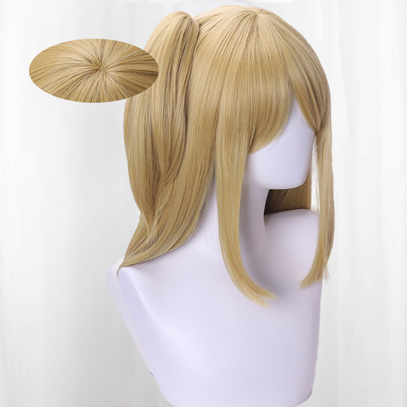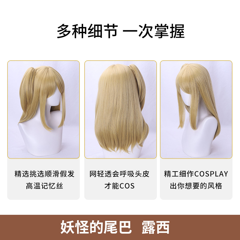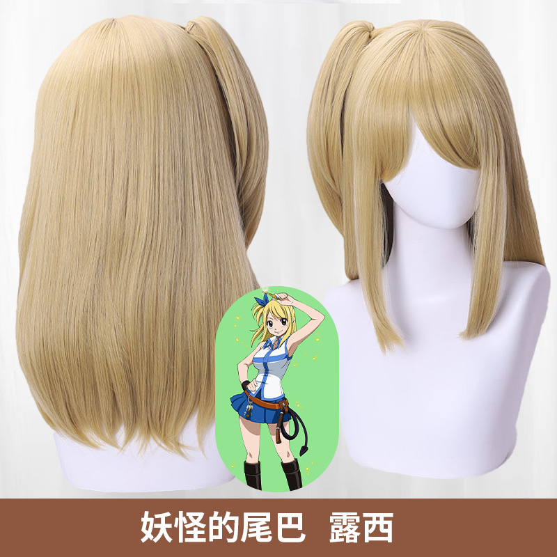 fairy tail lucy chinese style golden yellow jaws clamp side ponytail long hair simulation scalp cos wig