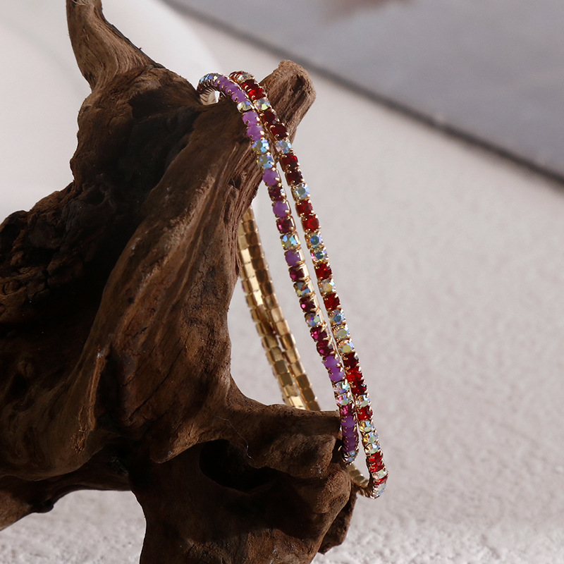 european and american style women's diamond elastic bracelet color zircon rhinestone claw chain colorful crystals bracelet gem diamond bracelet wholesale 中文版