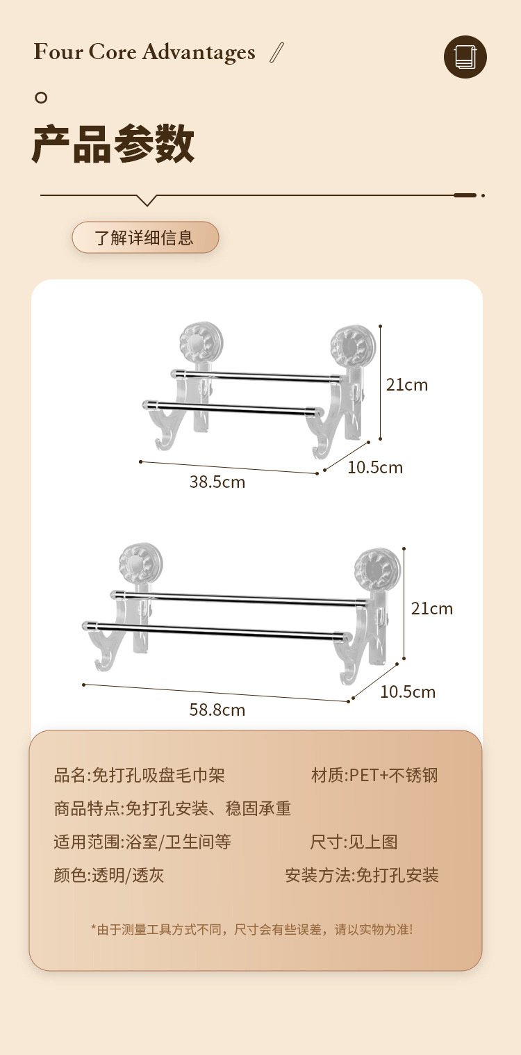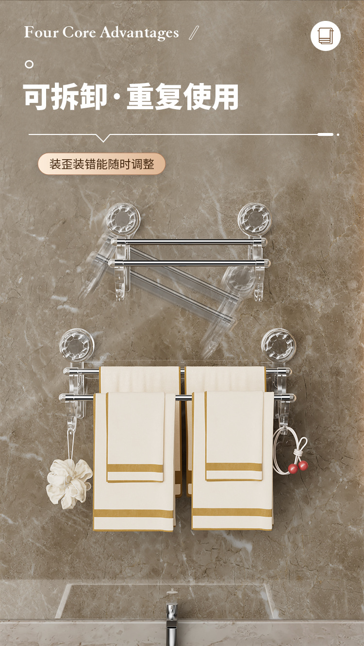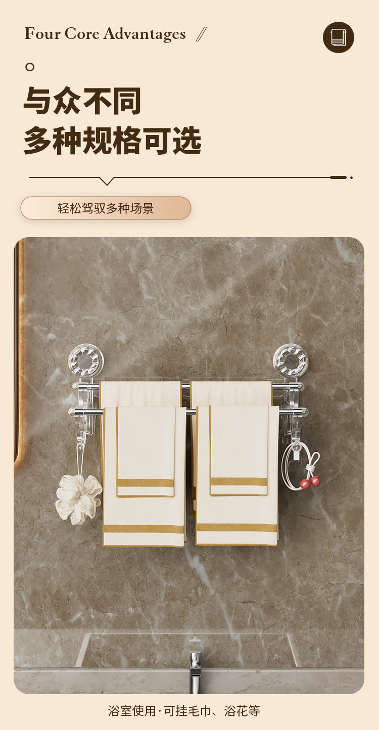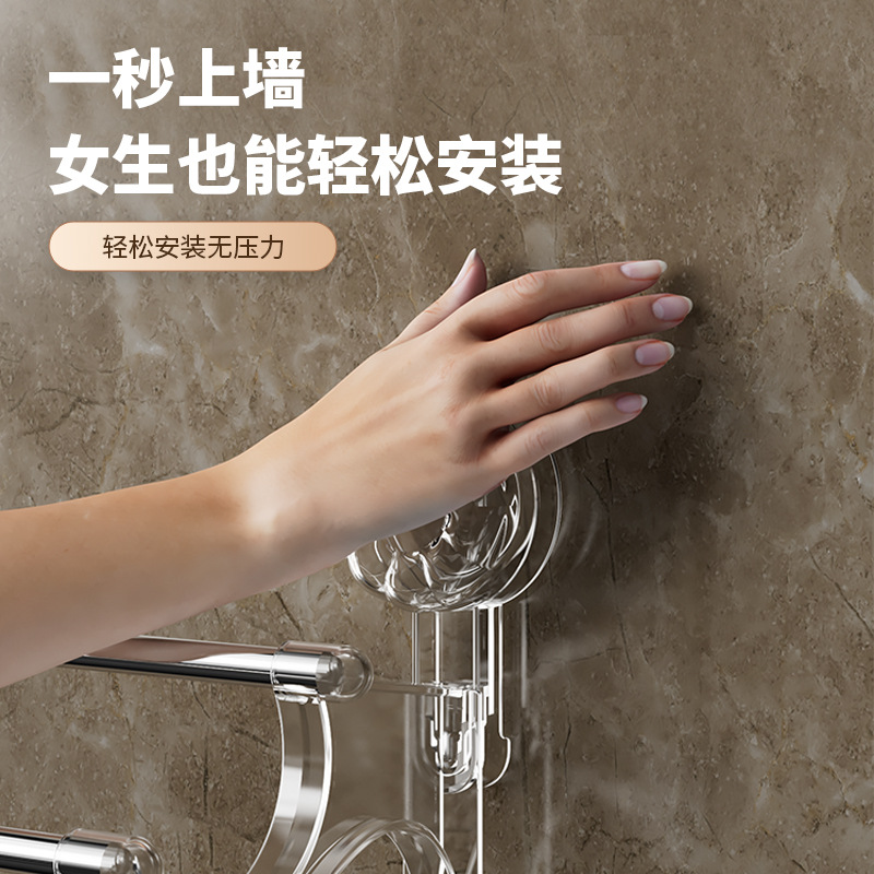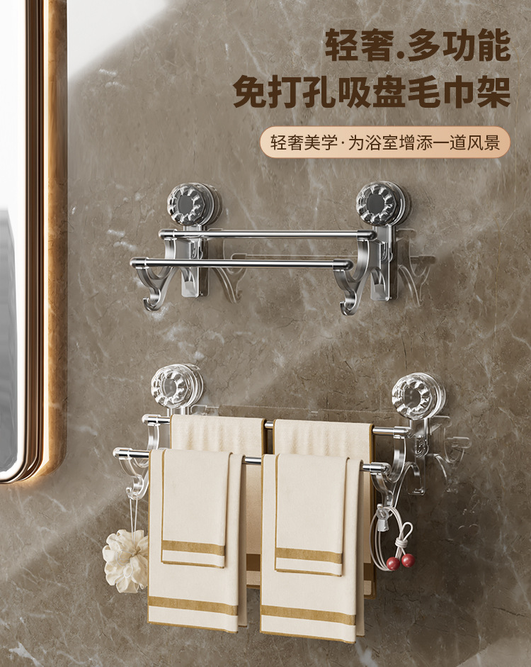 vacuum suction cup towel rack double rod with hook bathroom wall strong suction stainless steel towel bar hanger