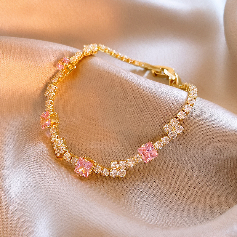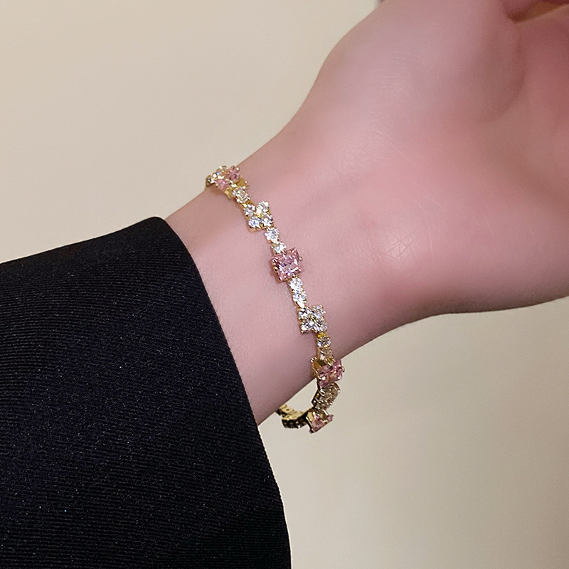 pink zircon super shiny full diamond bracelet women's light luxury high-grade twin bracelet special-interest design versatile fashion accessories