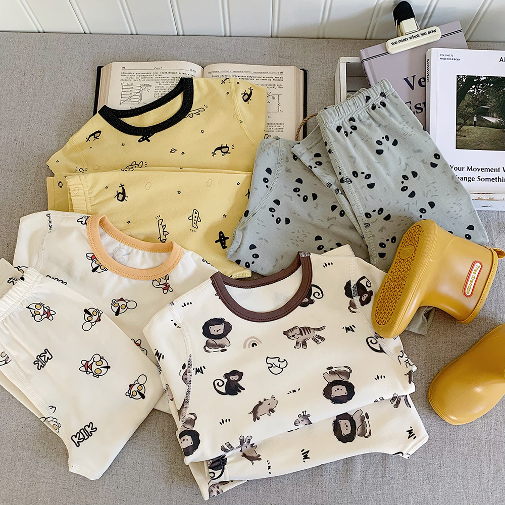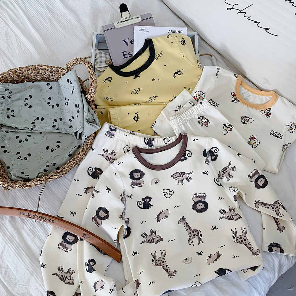 Children's Loungewear 2024 Autumn New Korean Children's Clothing Boys Cute Pajamas Suit Pure Cotton Thermal Underwear Tide 中文版