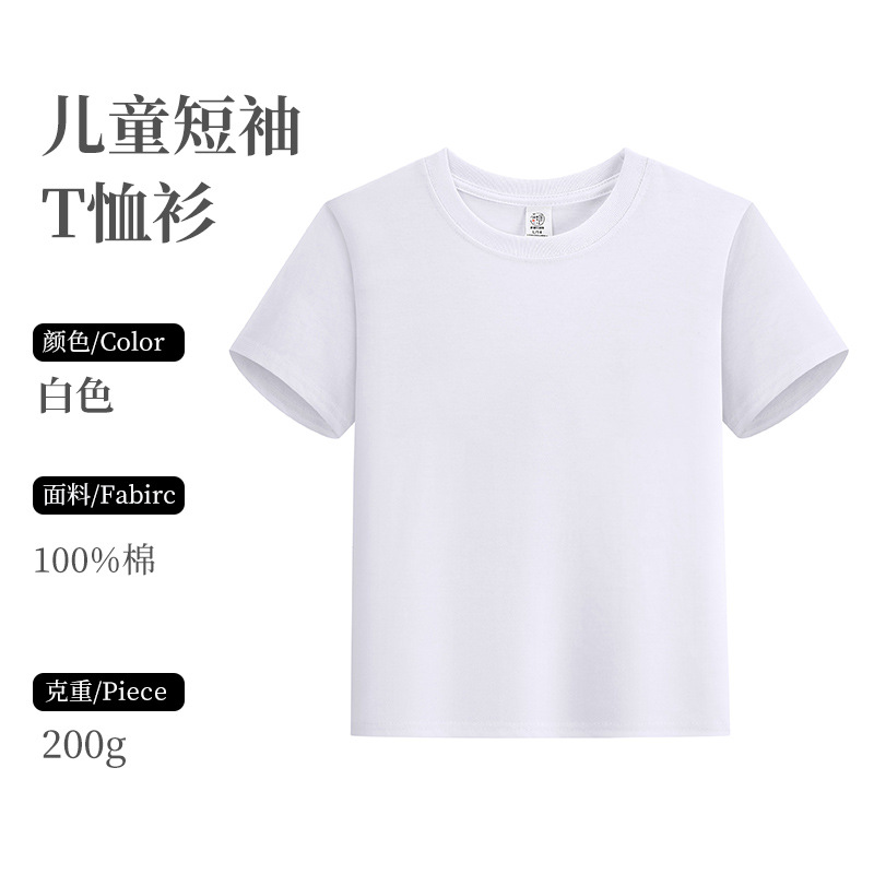 children's combed cotton round neck diy advertising shirt custom printed logo activity business attire enterprise tooling blank wholesale 中文版