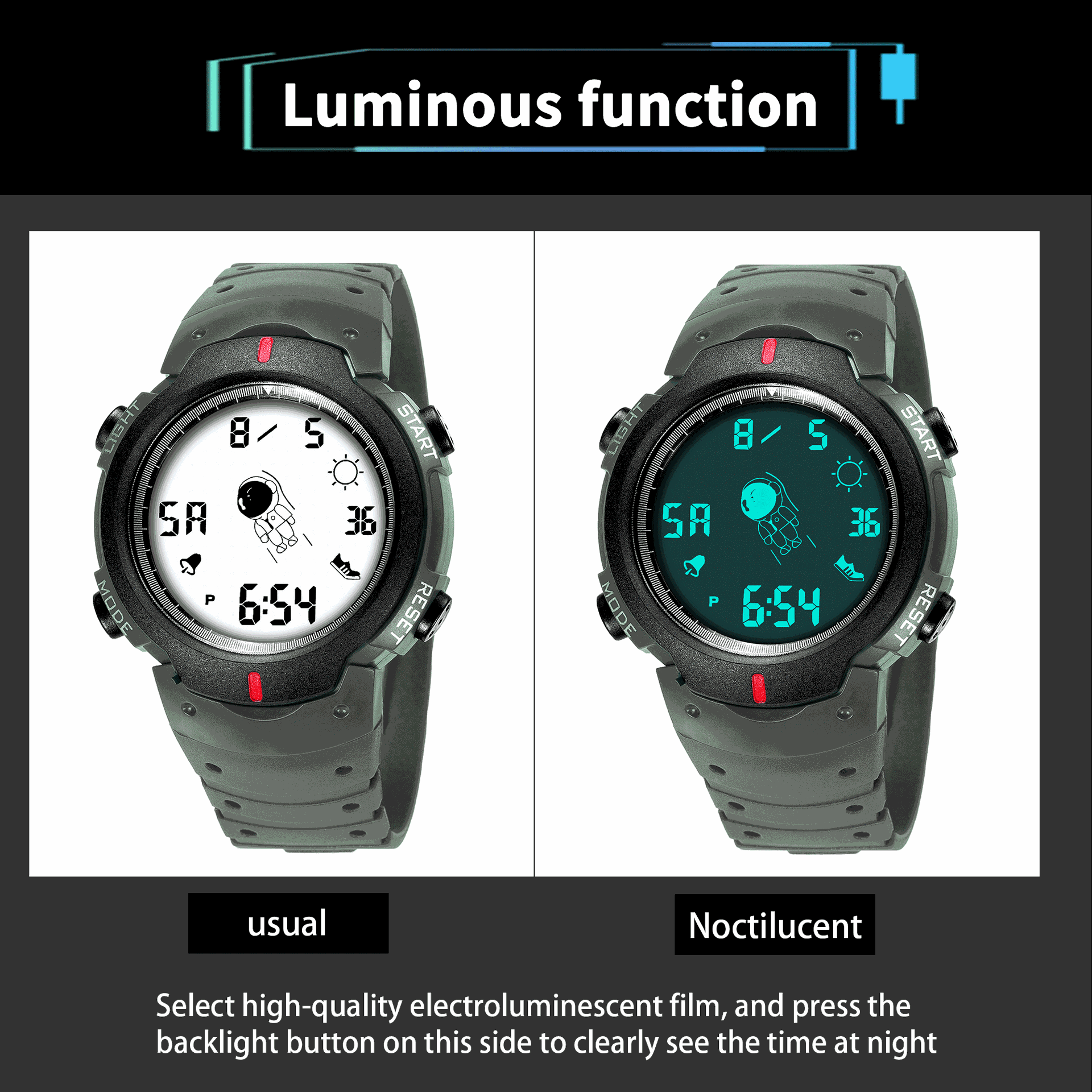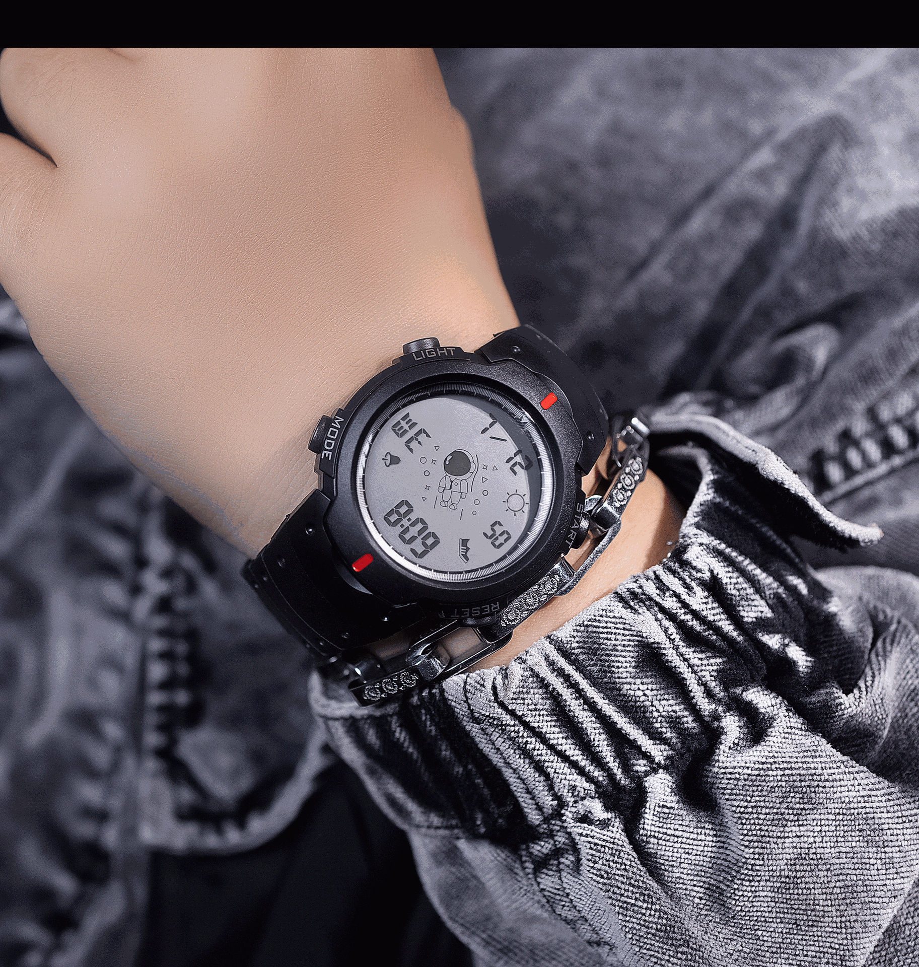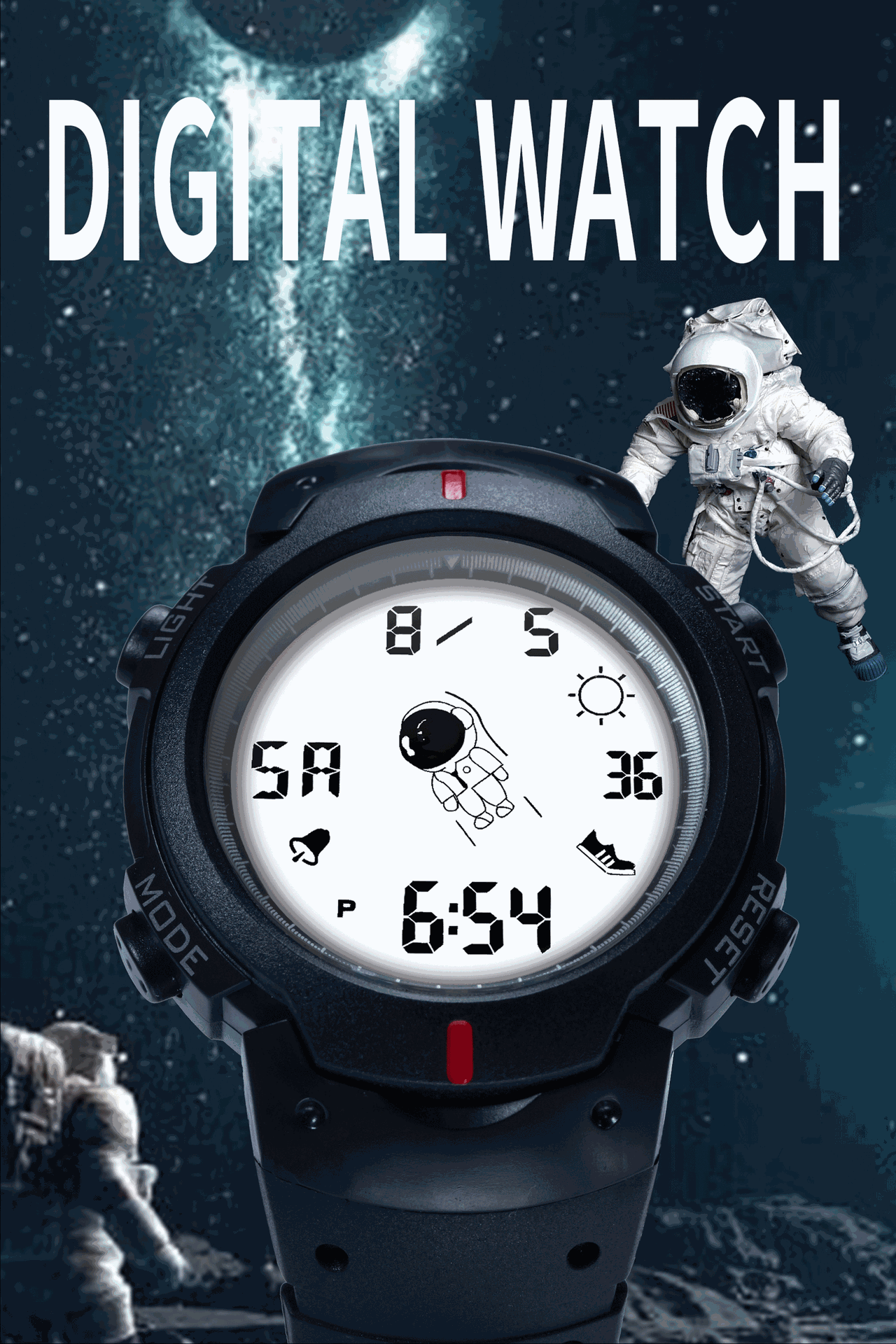 Fashion Elegant Spaceman Electronic Watch Men and Women Junior High School Student Trendy Youth Sports Style Electronic Watch 中文版