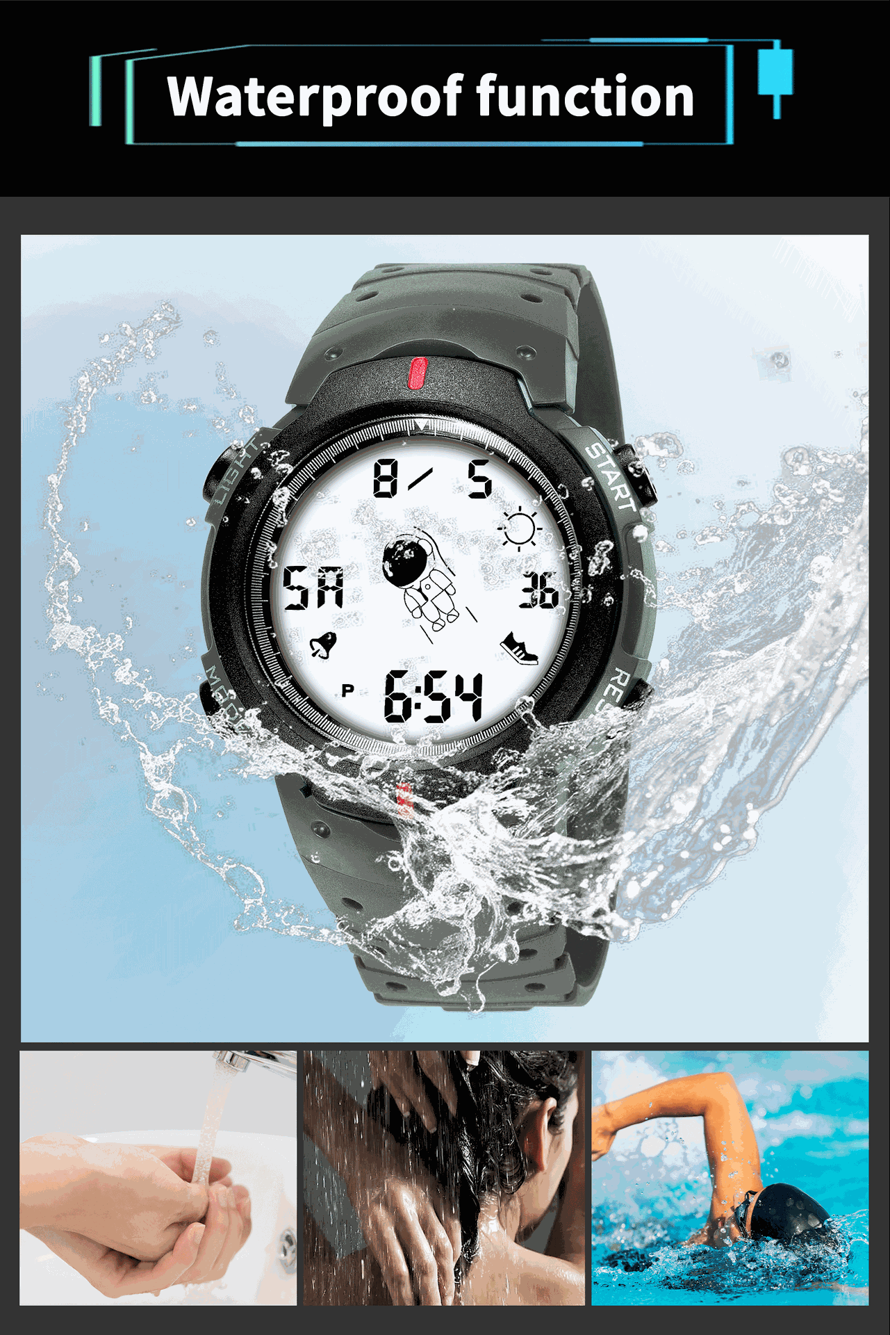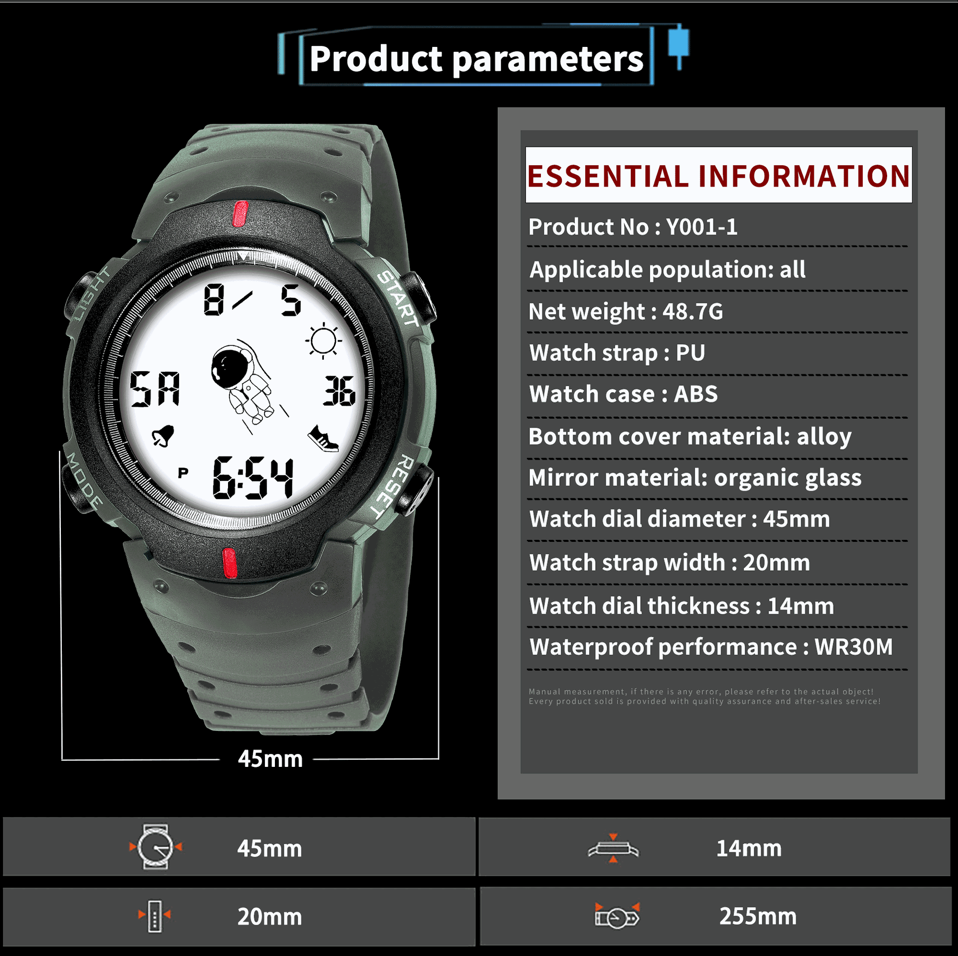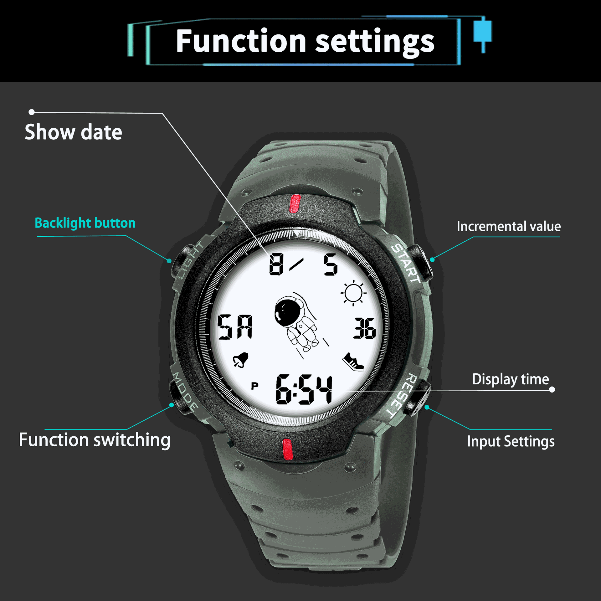 Fashion Elegant Spaceman Electronic Watch Men and Women Junior High School Student Trendy Youth Sports Style Electronic Watch 中文版