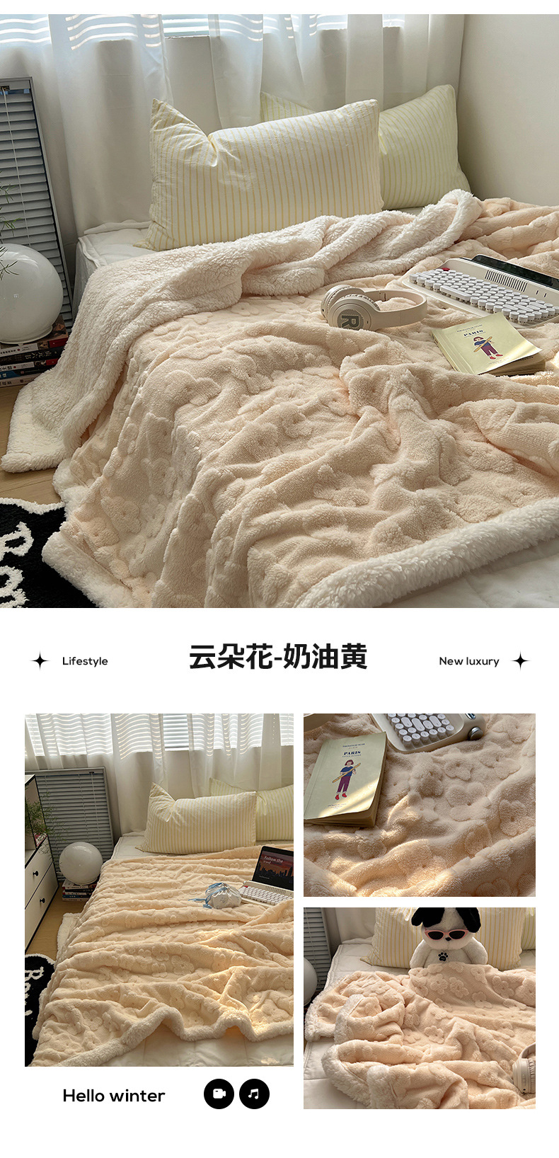 The company is self-sufficient and has its own dedicated factory. It can tailor various specifications, weights, and sizes of blankets to meet customer needs. It can also undertake processing services for raw materials.The scope of our business includes the production of flannel and coral fleece products from cutting to finished goods shipment. Our processes include: hemstitching, right-angle binding, machine binding, triangular stitching, lace blankets, fluff blankets, bedspreads, four-piece sets, jacquard and cutwork blankets, and various styles of blankets.Please contact the telephone number: 13777476886 (WeChat is also available) for custom orders. Detailed pictures and videos can be sent via WeChat.