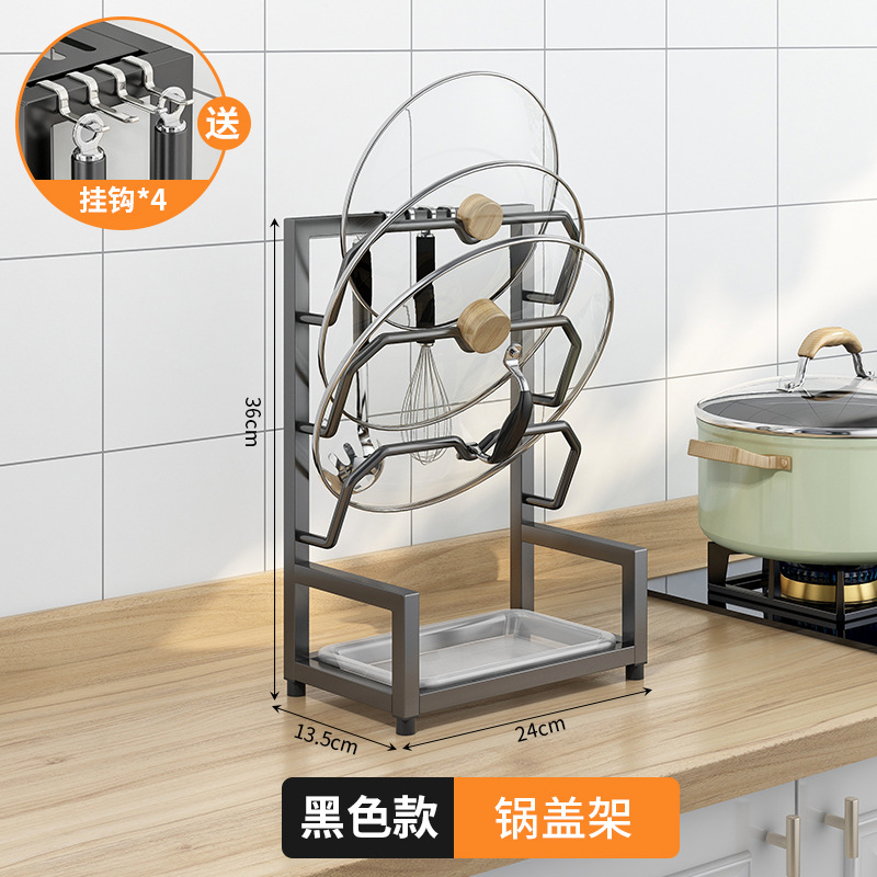 [black chopping board rack]-top with pot cover rack-get 4 hooks for free
