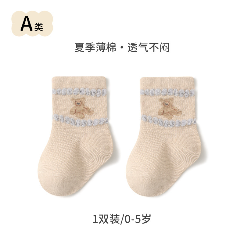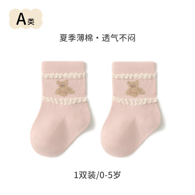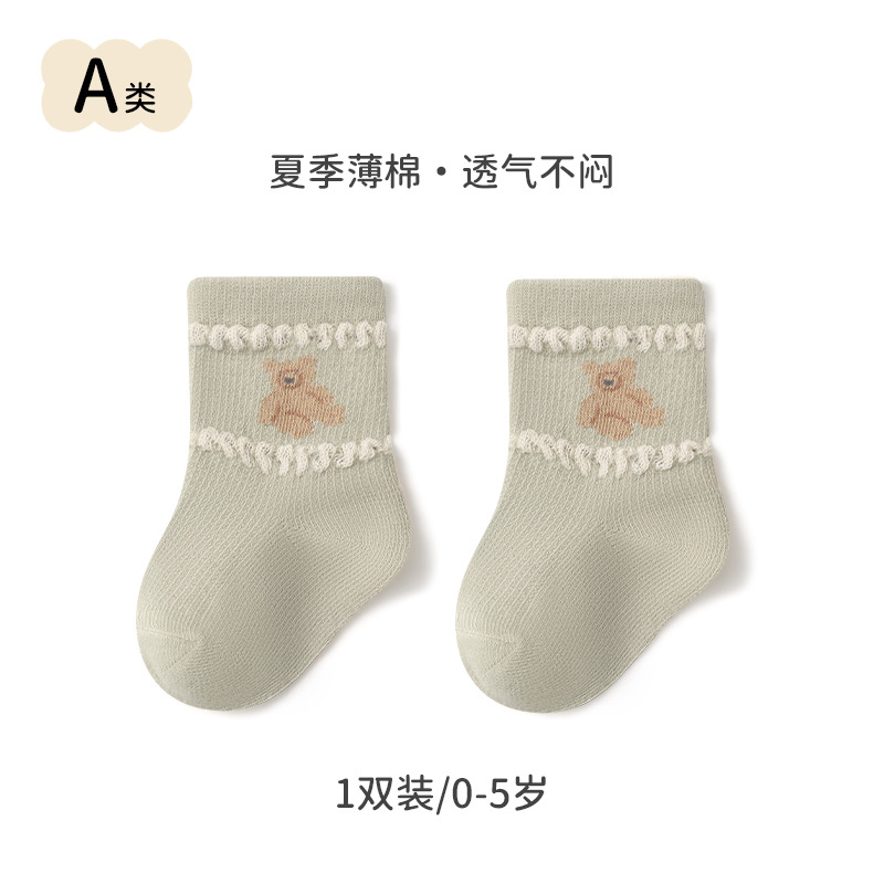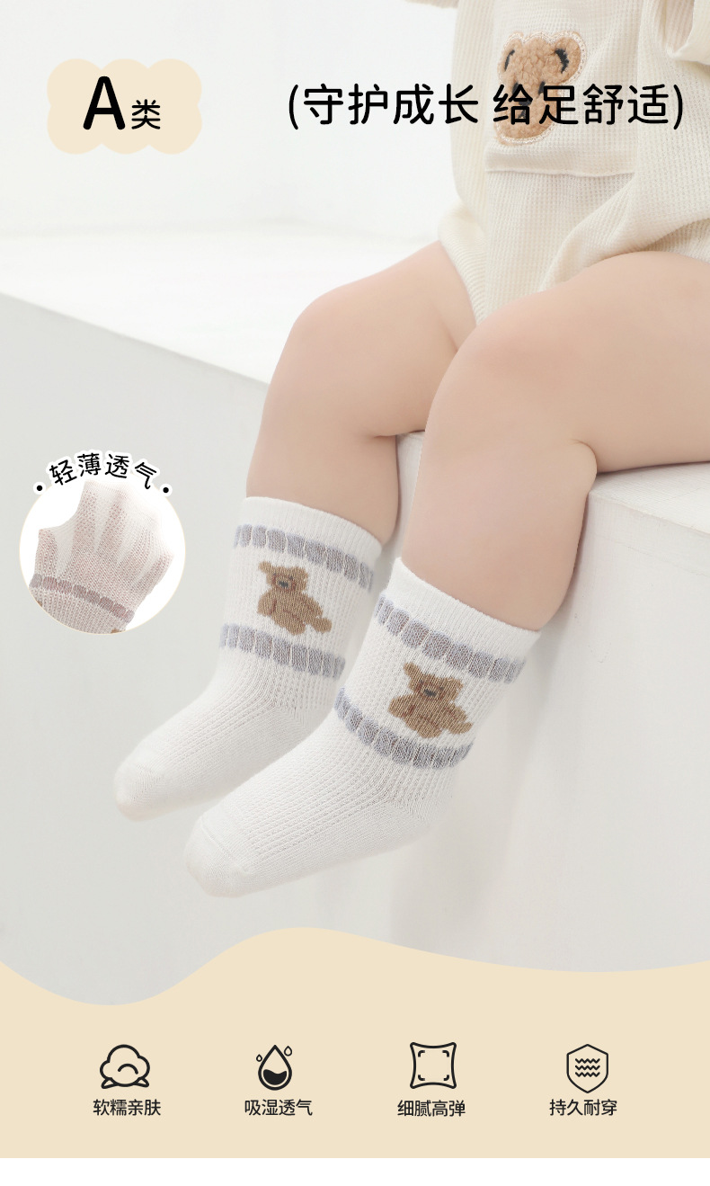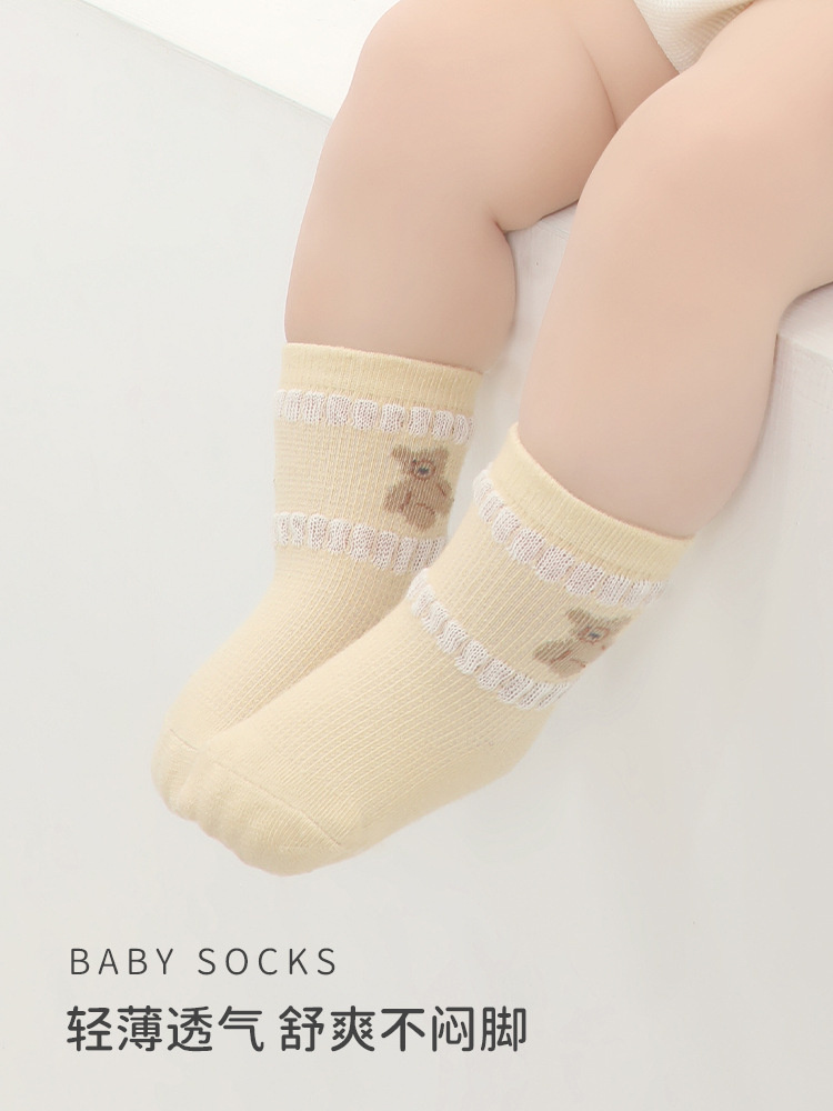 2024 summer new baby socks thin mesh breathable newborn baby socks boneless loose middle tube cotton socks