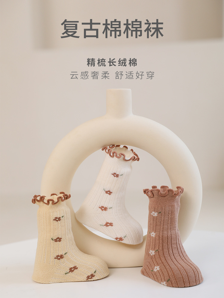2023 autumn new newborn baby socks boneless loose feet comfortable tree fungus-like lacework princess baby socks