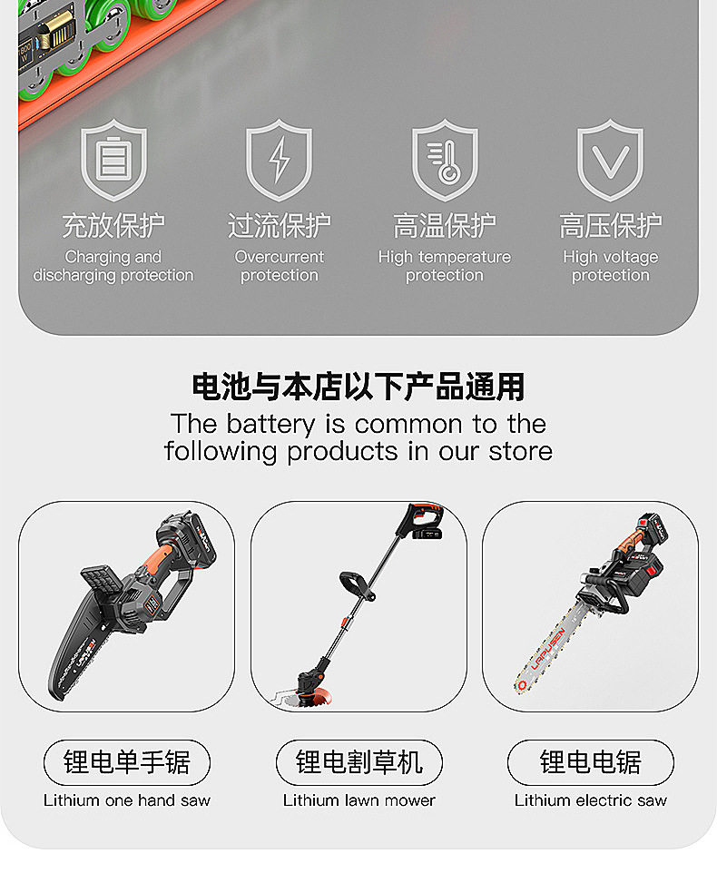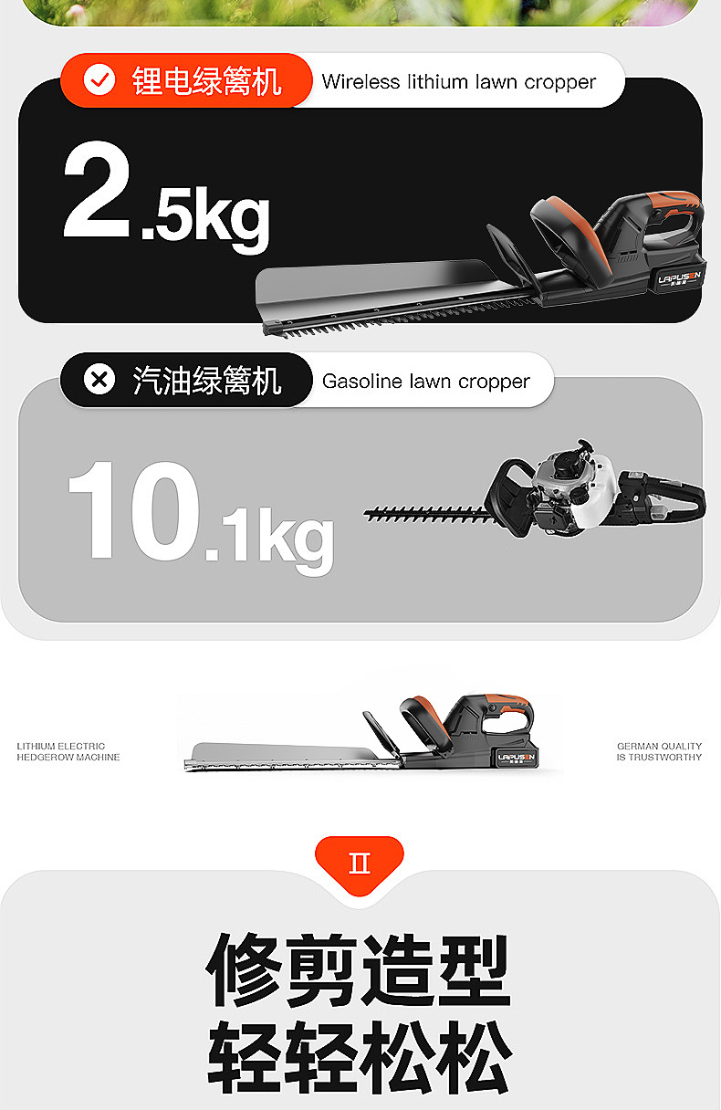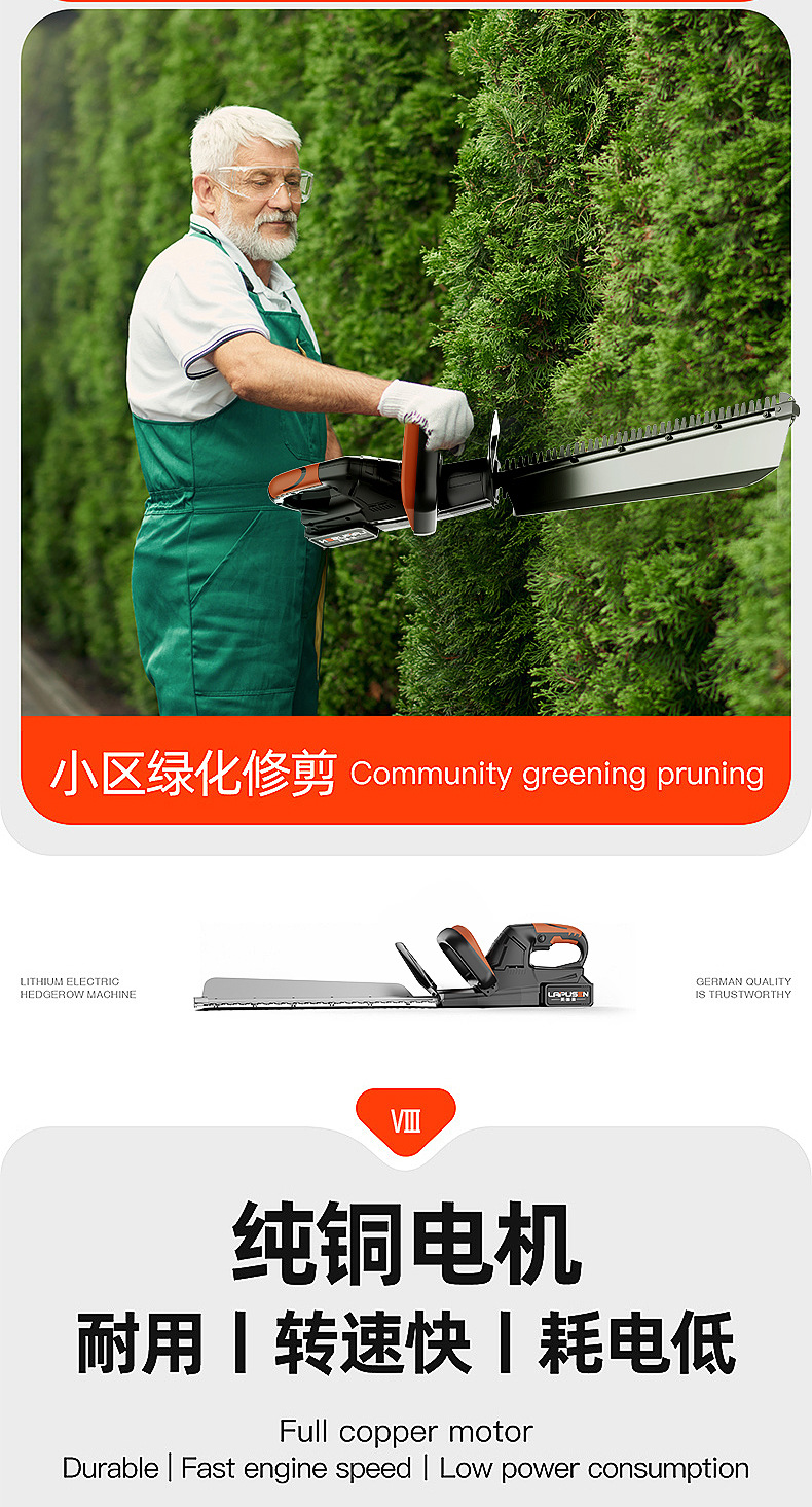 lithium battery single blade hedge trimmer (one battery, one charge, 10 sections, cell)