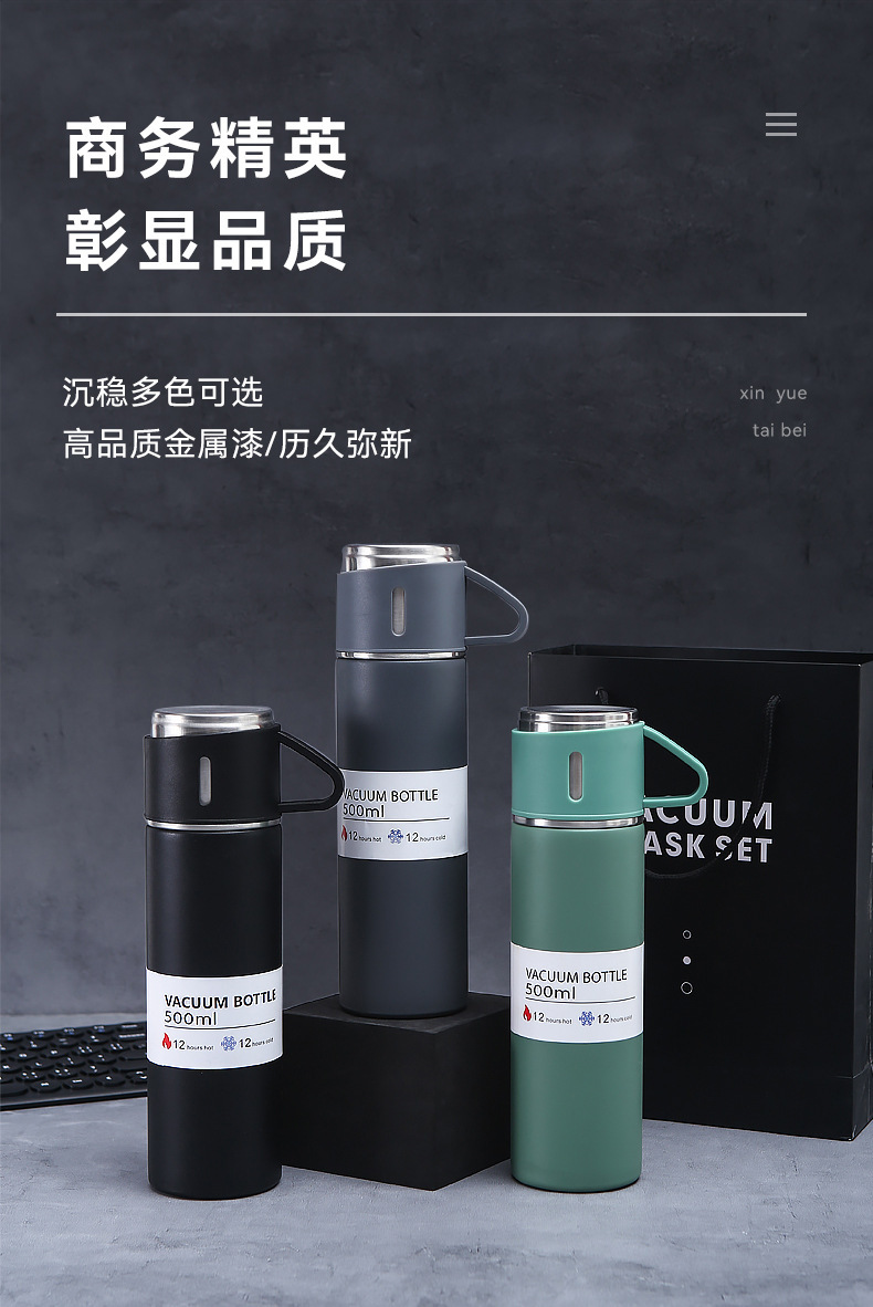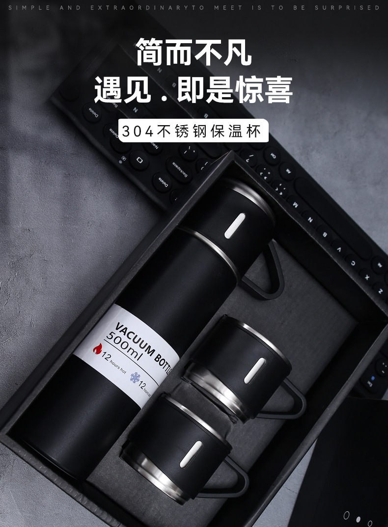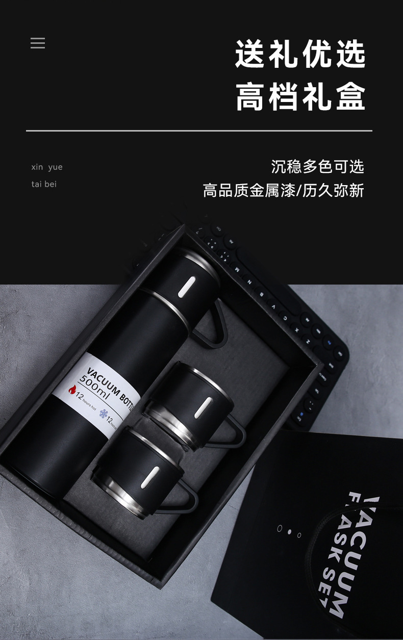 304 stainless steel thermos cup set business gift one cup three lid tumbler men and women handheld cup set