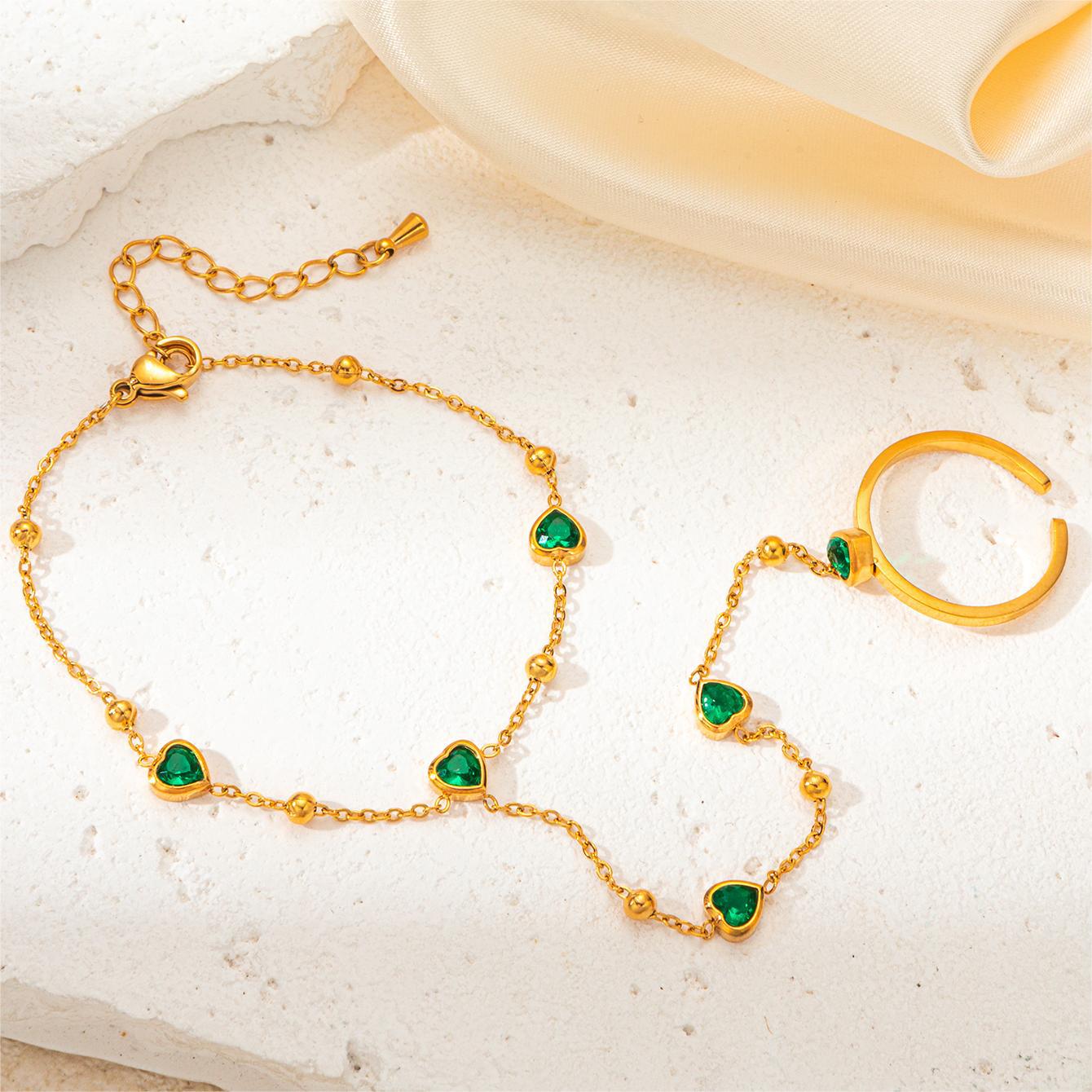 titanium steel green heart mitten-type bracelet