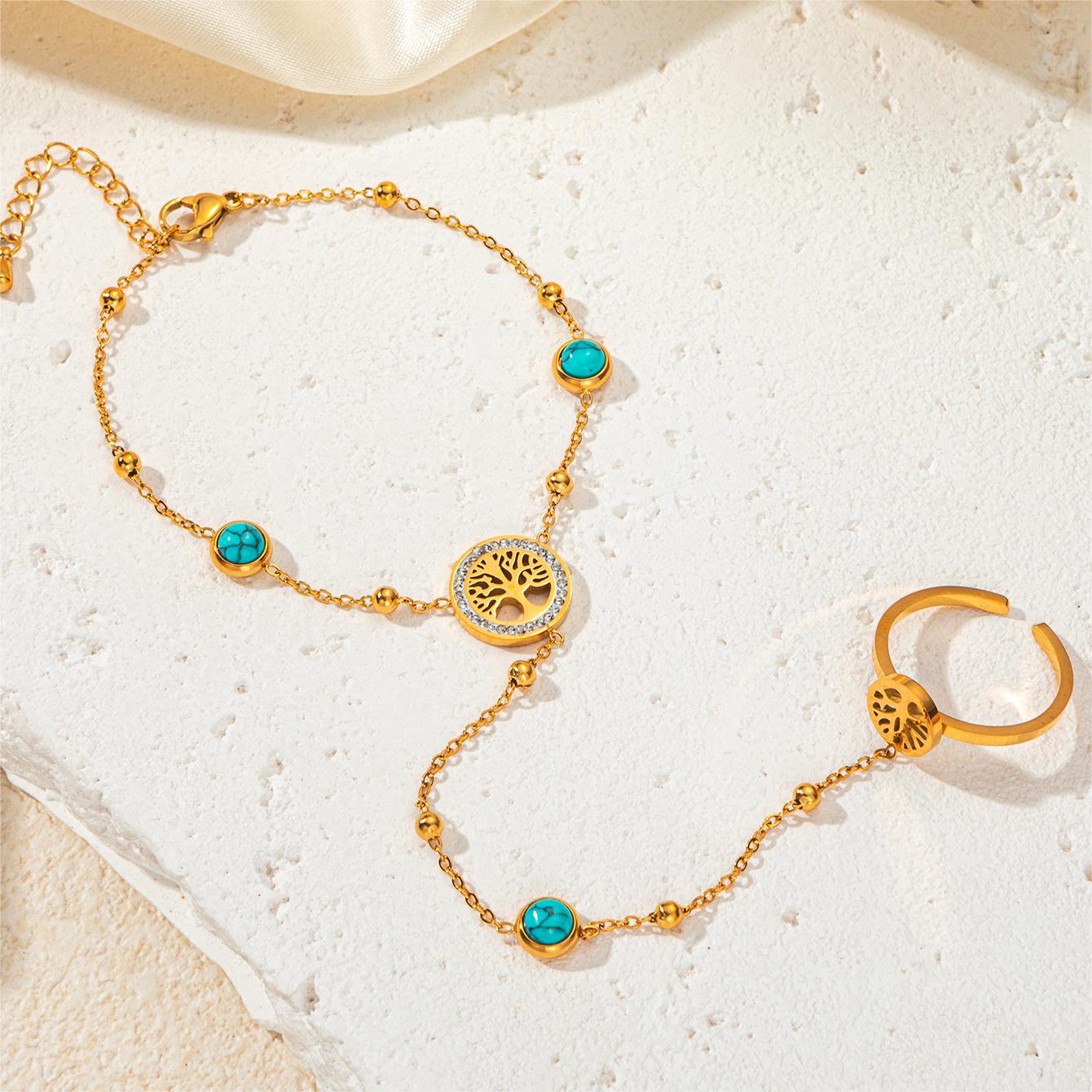 titanium steel turquoise round plate mitten-type bracelet