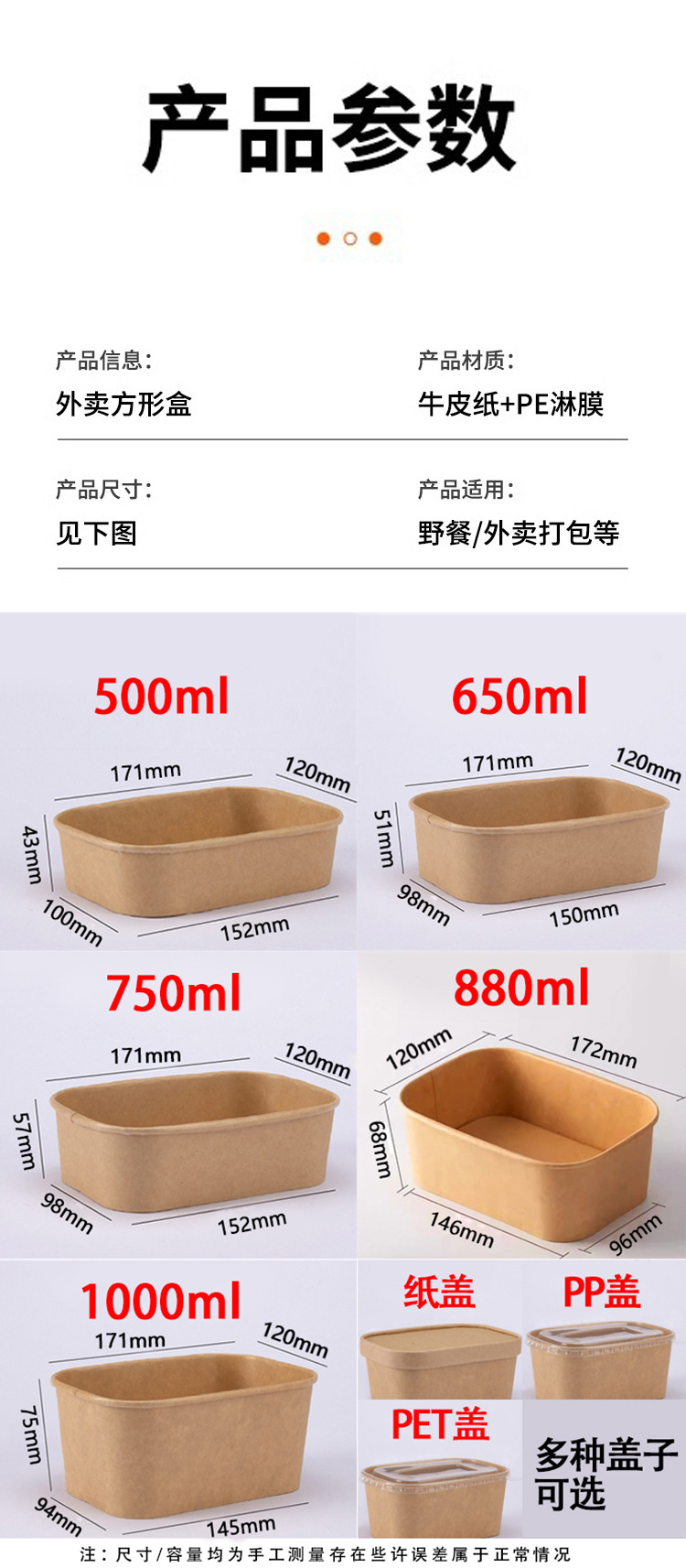 extra thick square 750ml lunch box + degradable paper cover