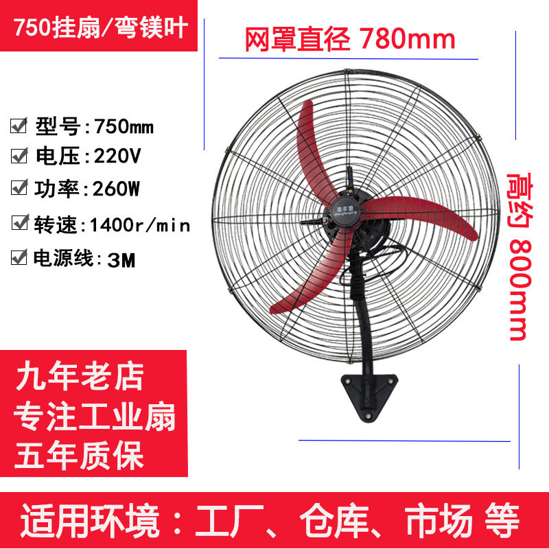 750mm wall mounted fan (machete leaves) high configuration + self-buckle net + five-year warranty