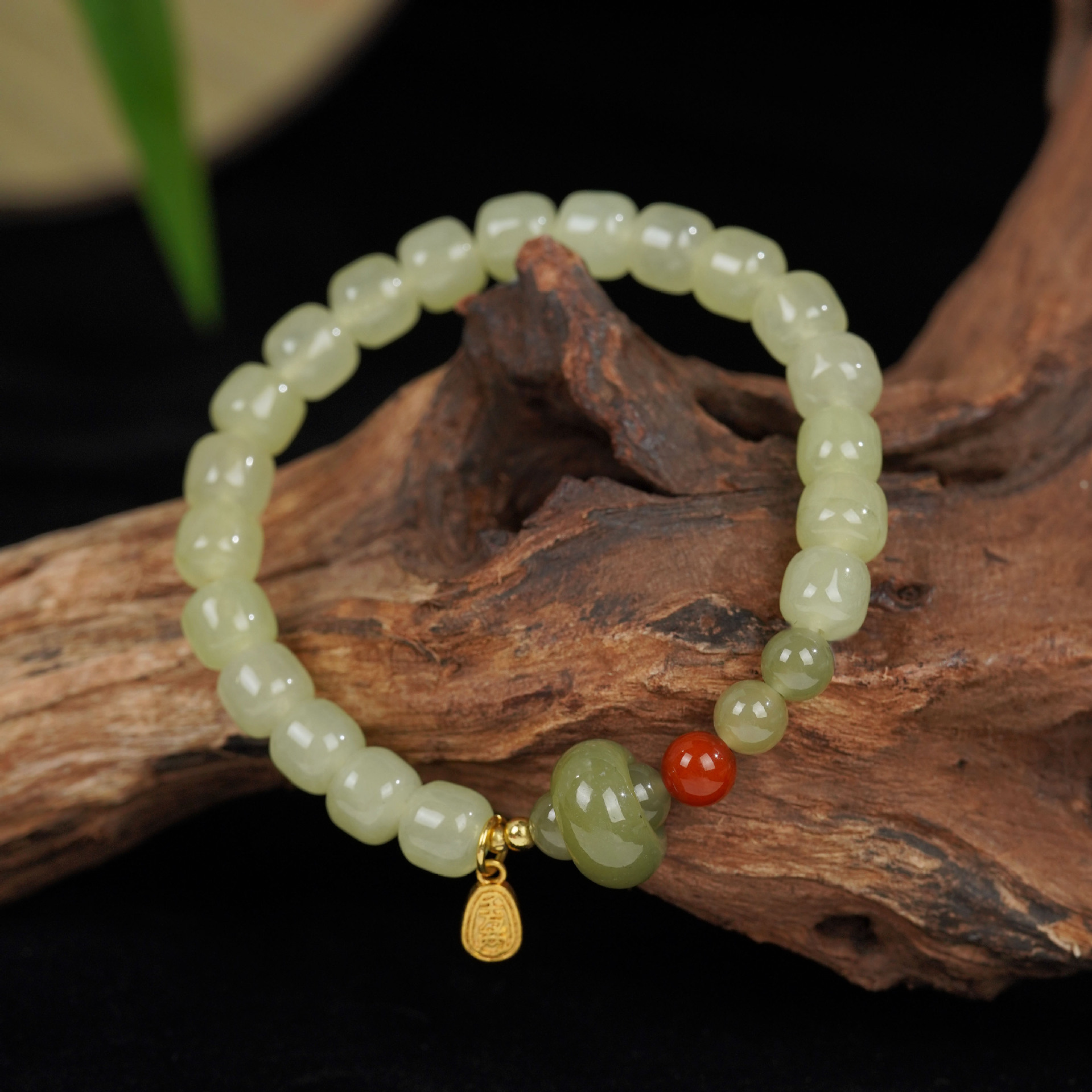 【产品名称】:天然岫玉+南红玛瑙手串