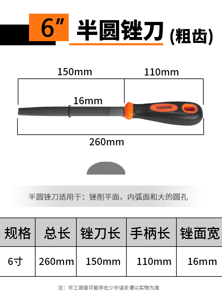[semicircle file coarse texture] 6-inch-t12 tool steel