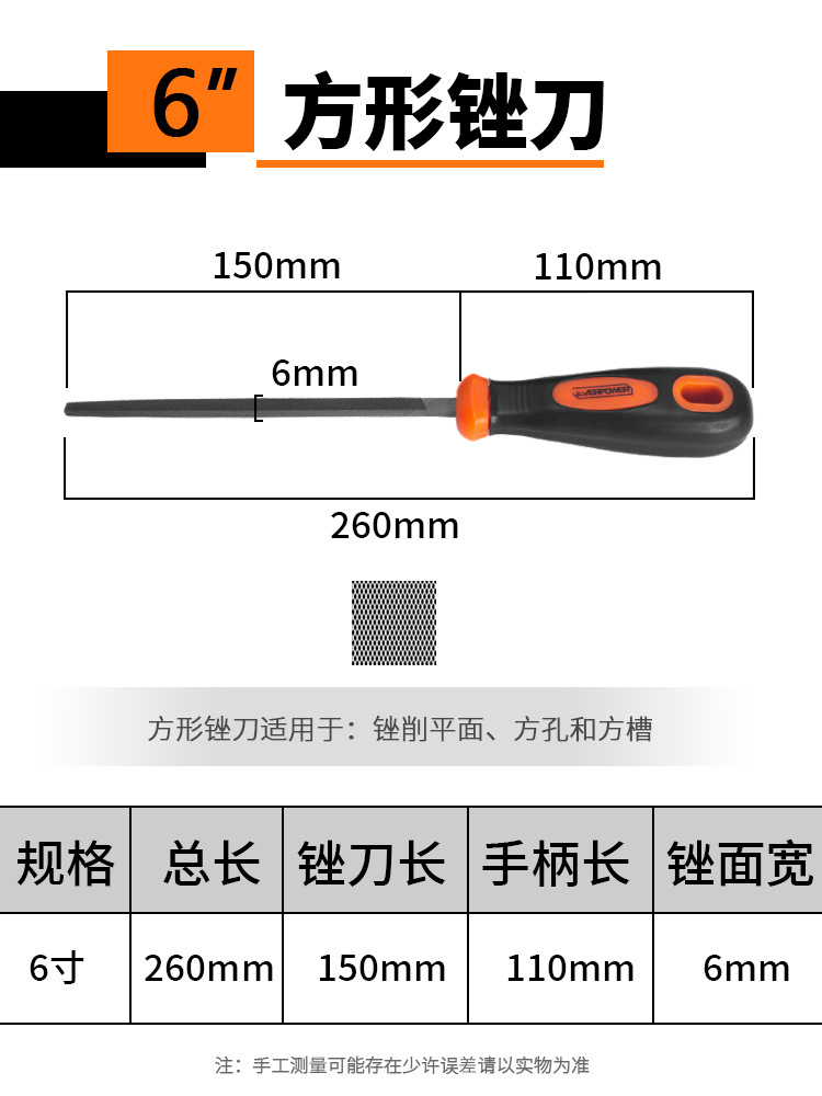 [square file medium tooth] 6-inch-t12 tool steel